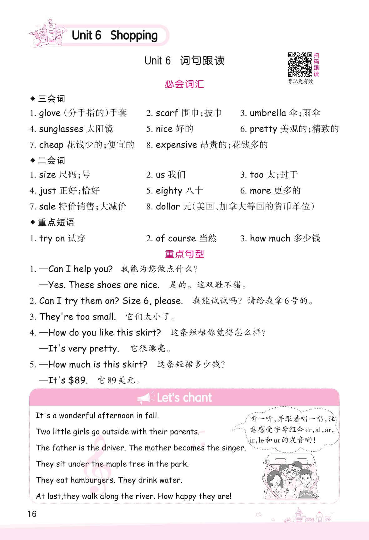 2022下册四年级英语人教PEP版 Unit 6 Shopping—词句跟读