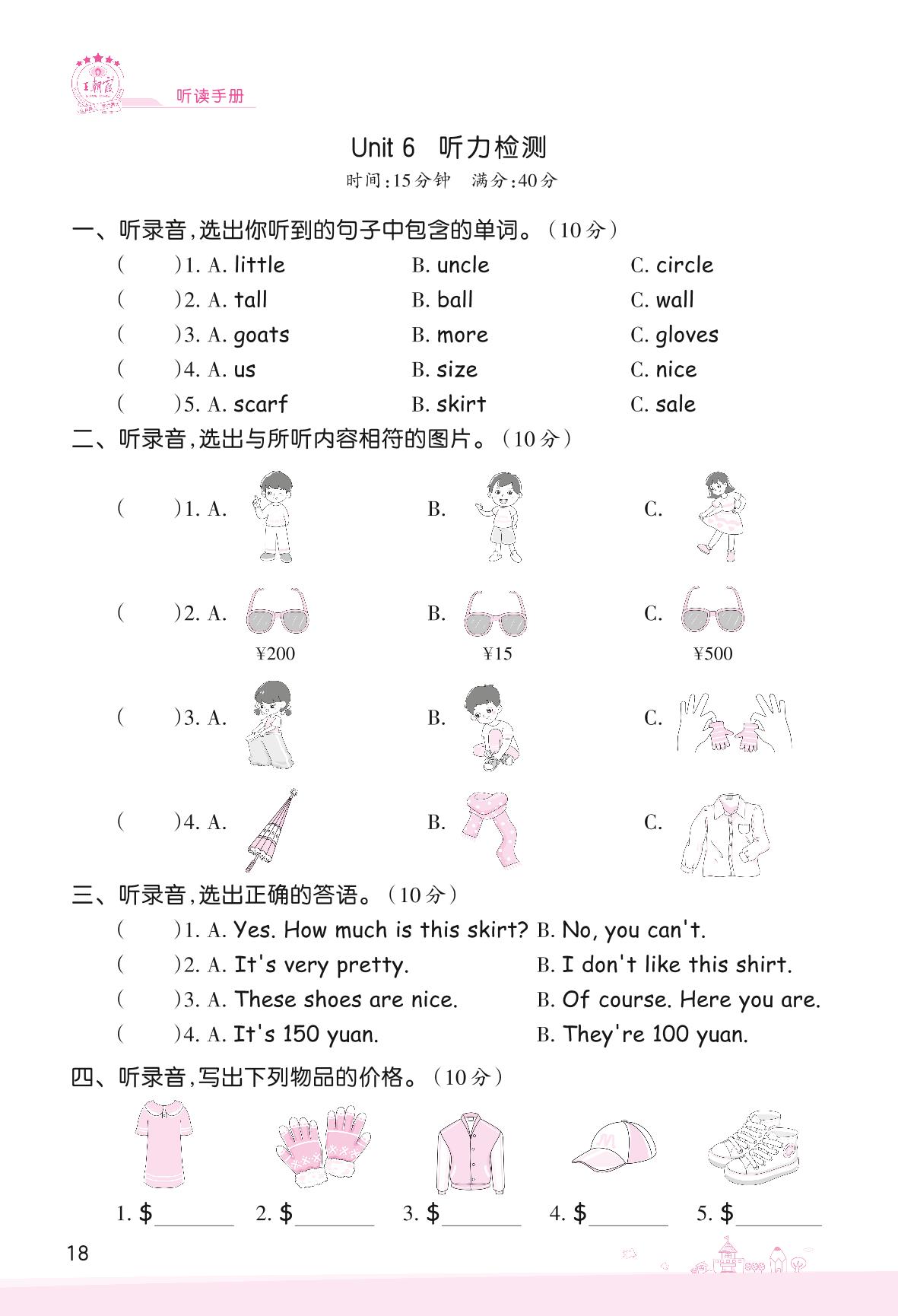 2022下册四年级英语人教PEP版 Unit 6 Shopping—听力检测
