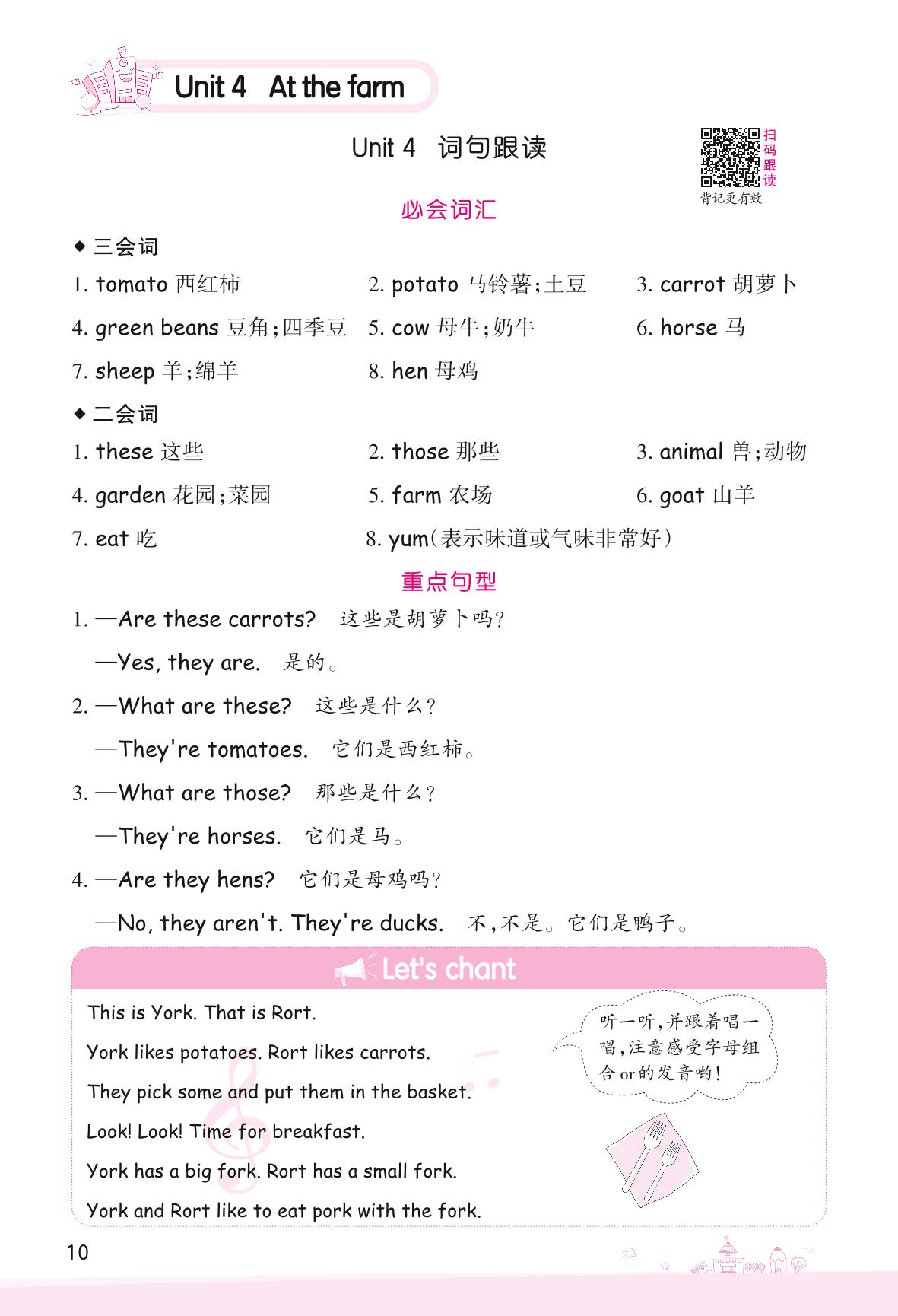 2022下册四年级英语人教PEP版 Unit 4 At the farm—词句跟读