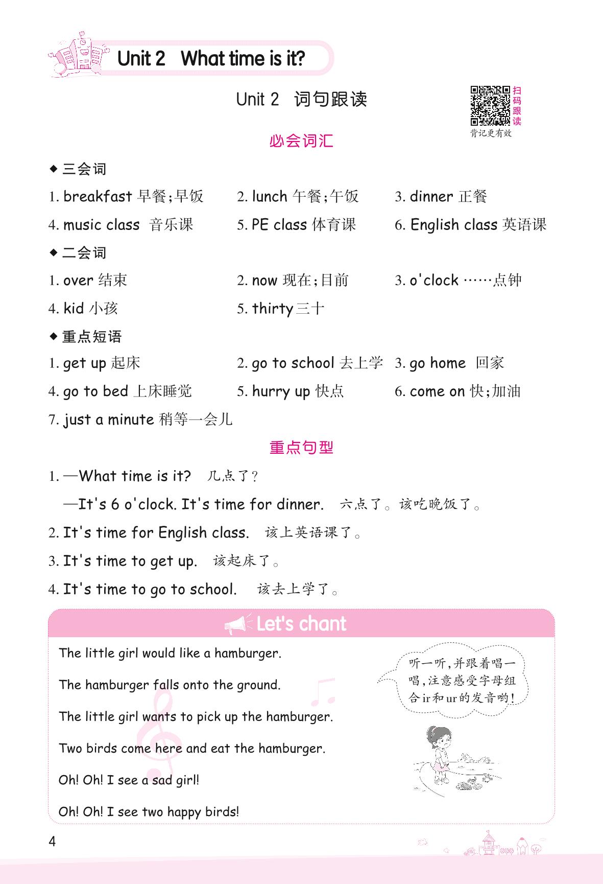 2022下册四年级英语人教PEP版 Unit 2 What time is it?—词句跟读