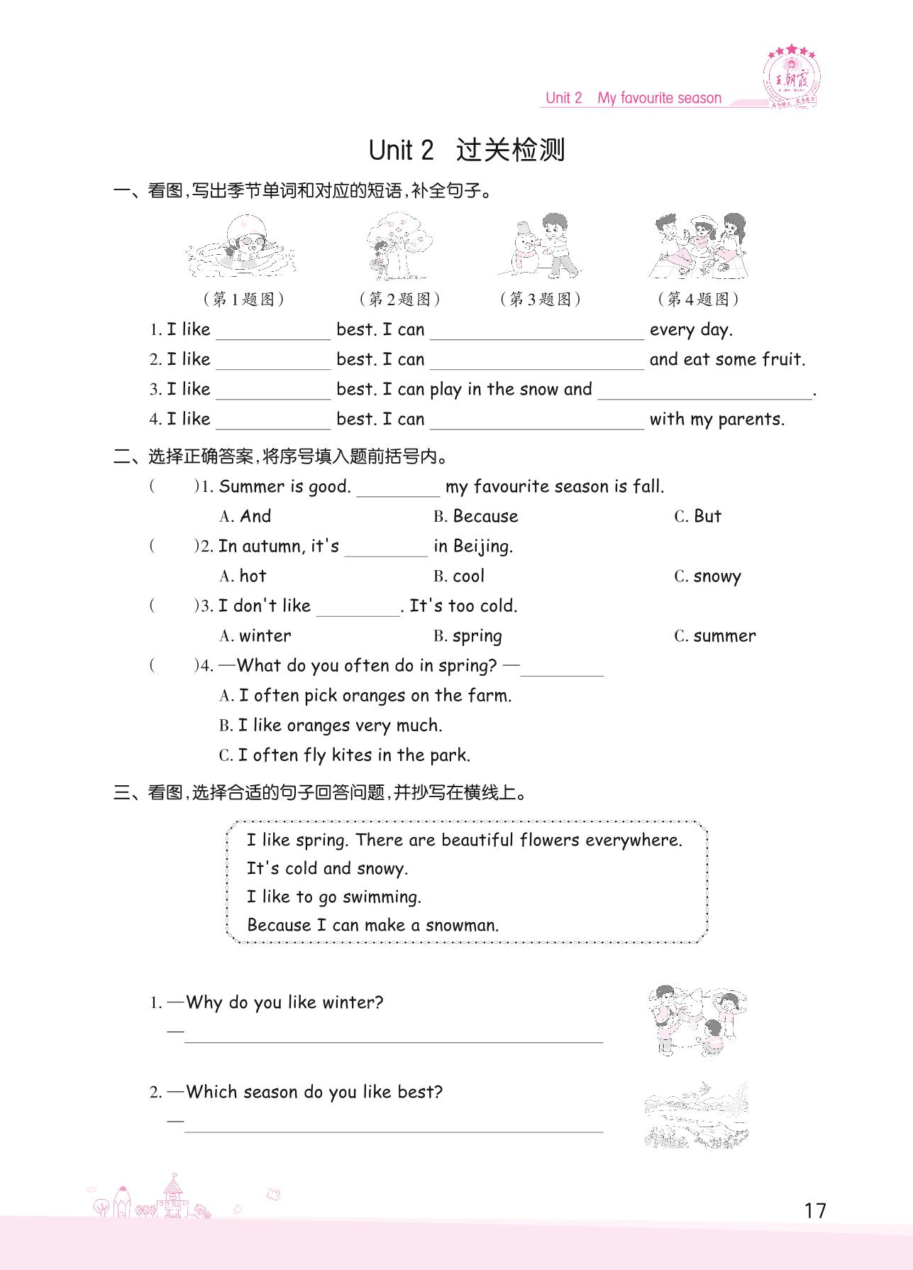 2022下册五年级英语人教PEP版 Unit 2 过关检测