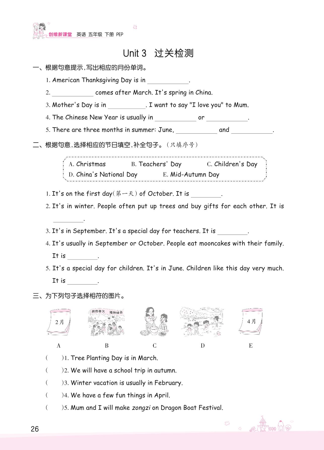 2022下册五年级英语人教PEP版 Unit 3 过关检测