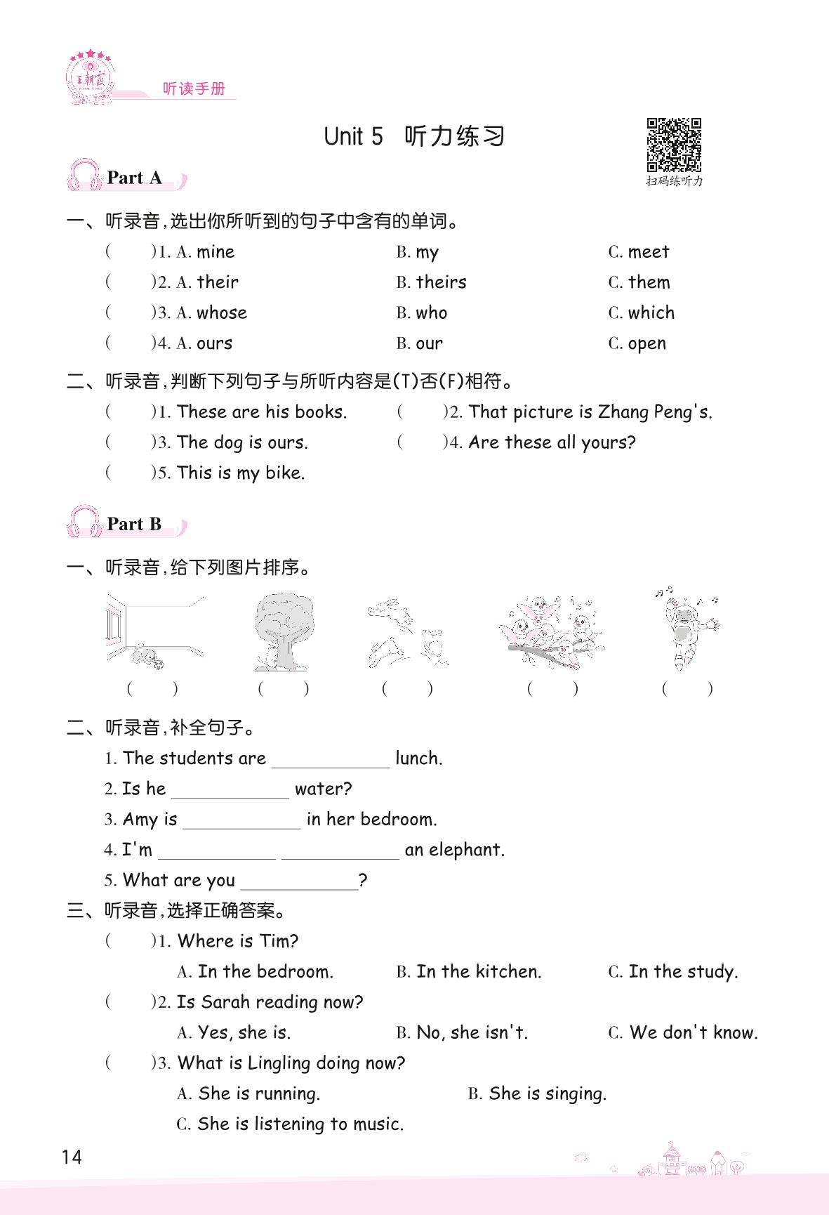 2022下册五年级英语人教PEP版 Unit 5 Whose dog is it?—Part A、Part B 听力练习