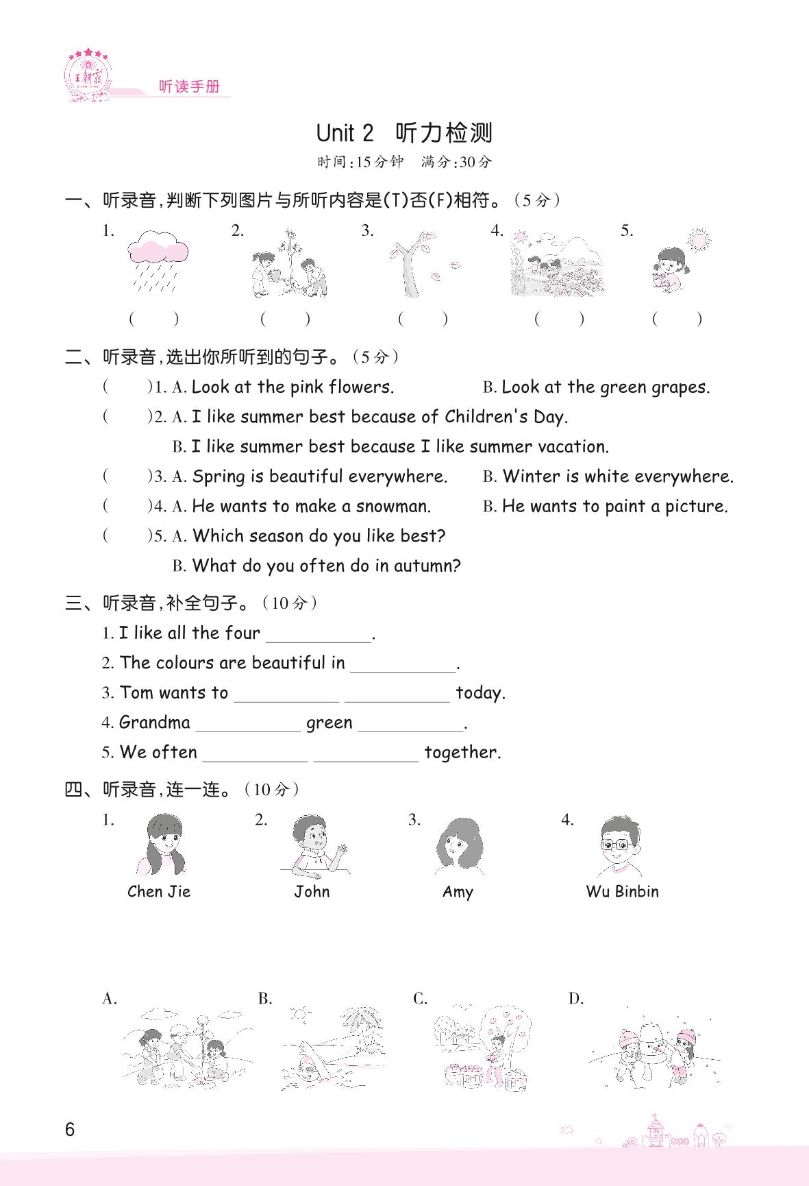 2022下册五年级英语人教PEP版 Unit 2 My favourite season—听力检测