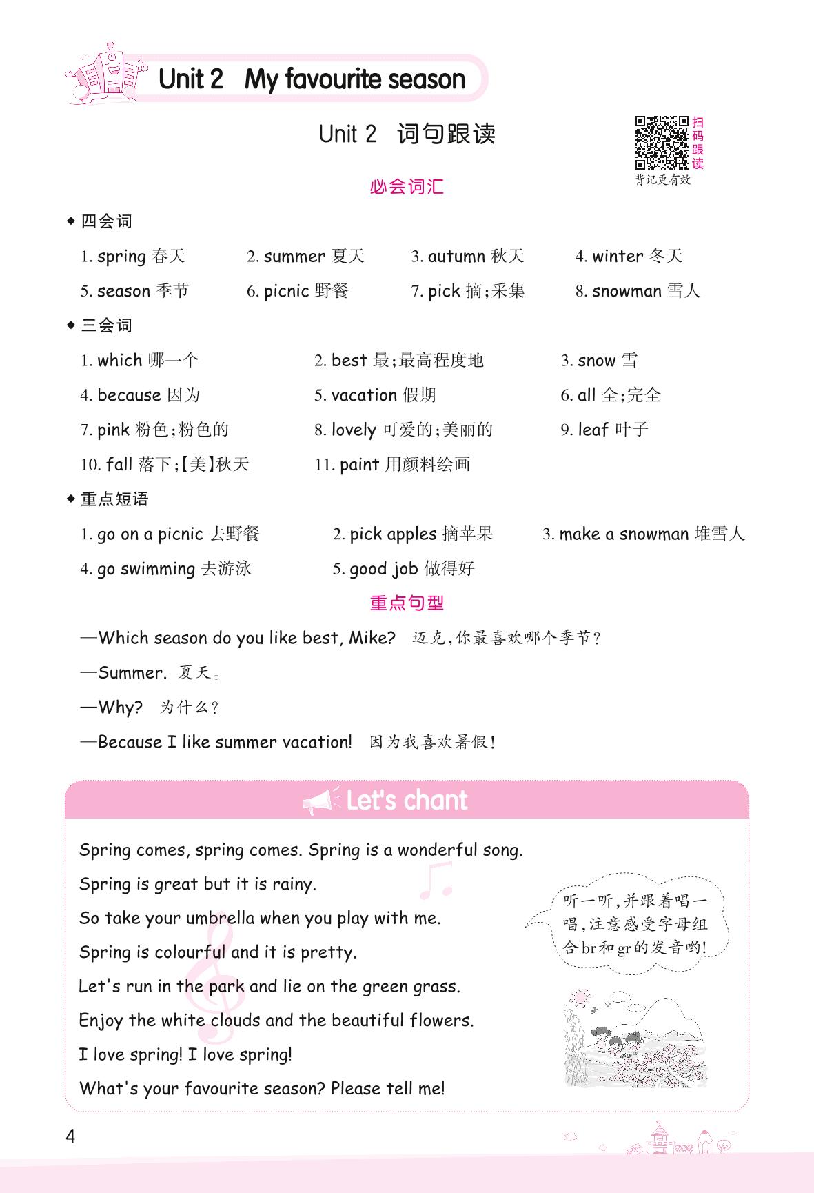 2022下册五年级英语人教PEP版 Unit 2 My favourite season—词句跟读