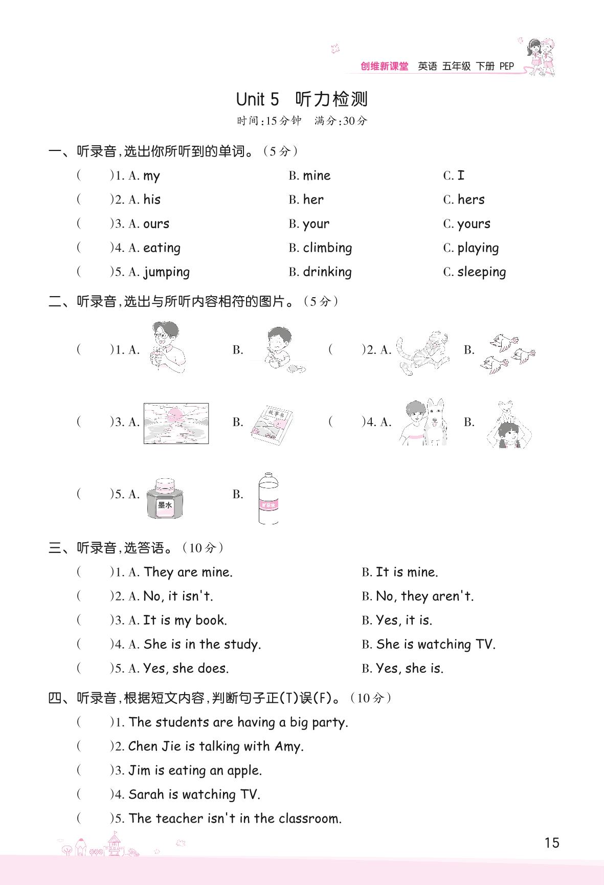 2022下册五年级英语人教PEP版 Unit 5 Whose dog is it?—听力检测