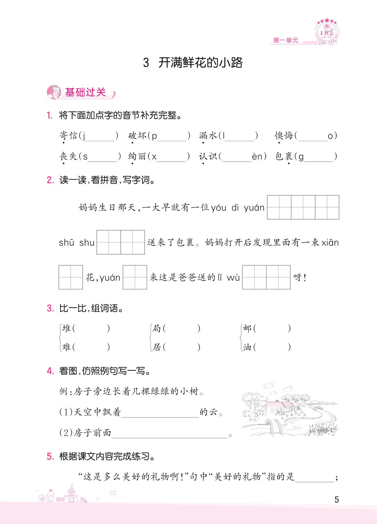 2022下册二年级语文人教版 第一单元 课文——3 开满鲜花的小路