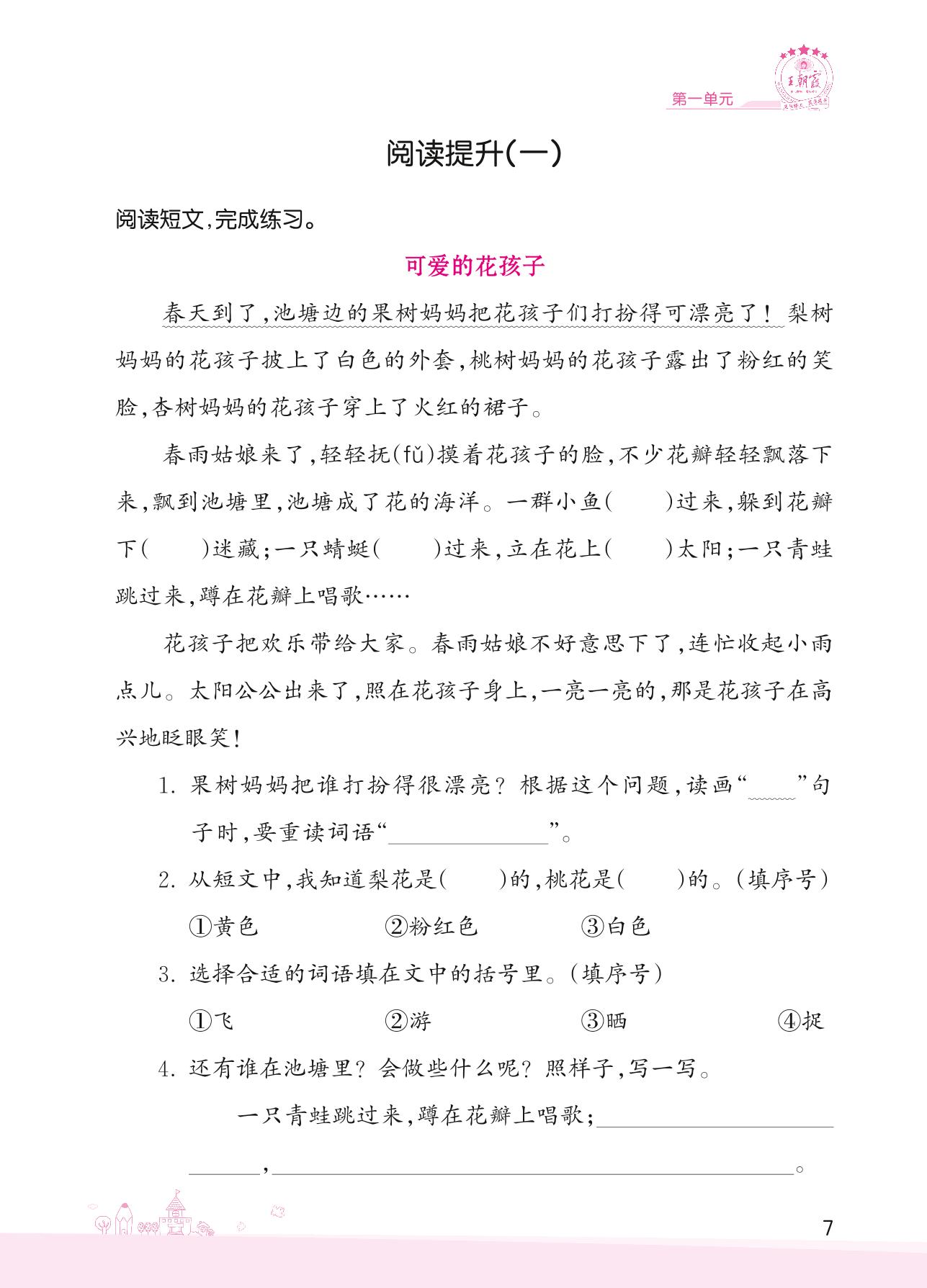 2022下册二年级语文人教版 第一单元 课文——阅读提升(一)