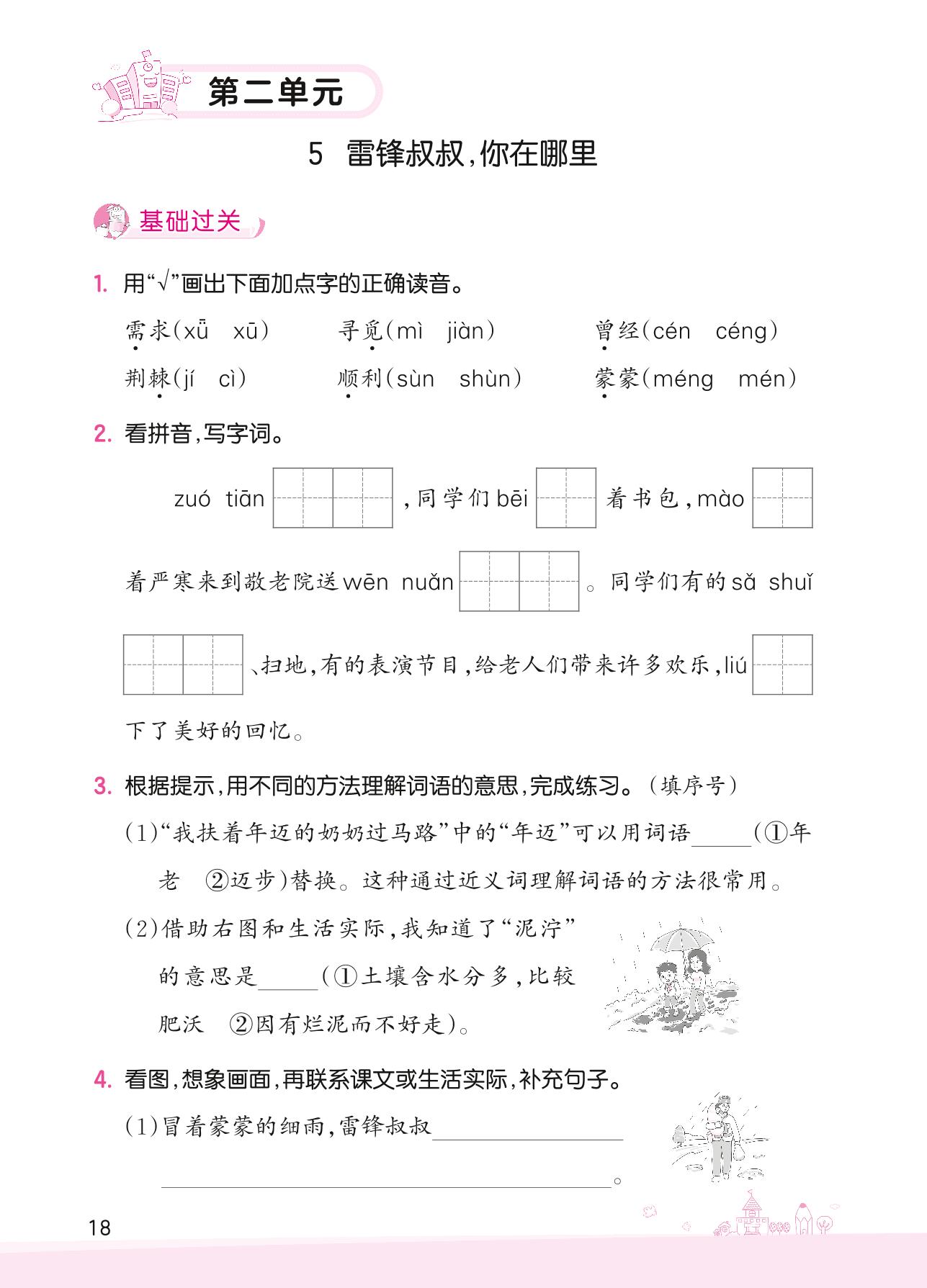 2022下册二年级语文人教版 第二单元 课文——5 雷锋叔叔,你在哪里