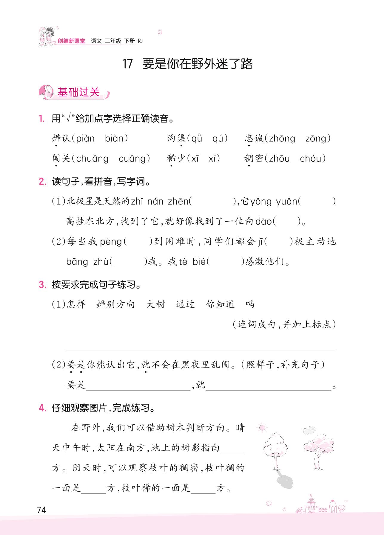 2022下册二年级语文人教版 第六单元 课文——17 要是你在野外迷了路