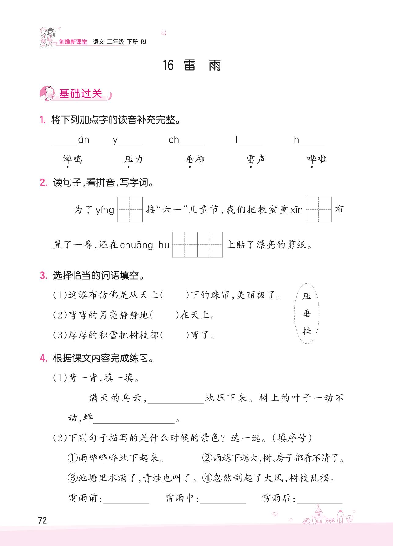 2022下册二年级语文人教版 第六单元 课文——16 雷雨