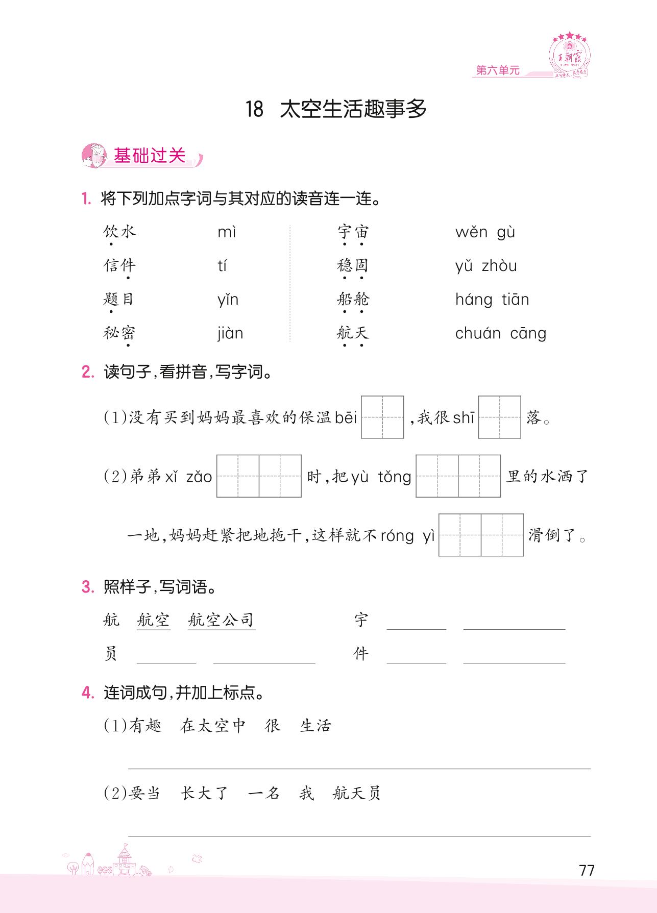 2022下册二年级语文人教版 第六单元 课文——18 太空生活趣事多