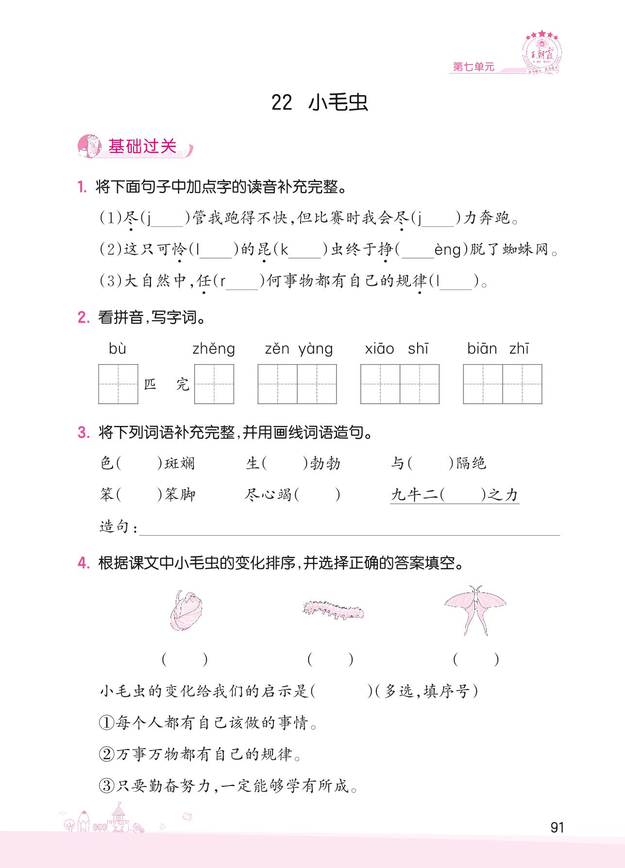2022下册二年级语文人教版 第七单元 课文——22 小毛虫