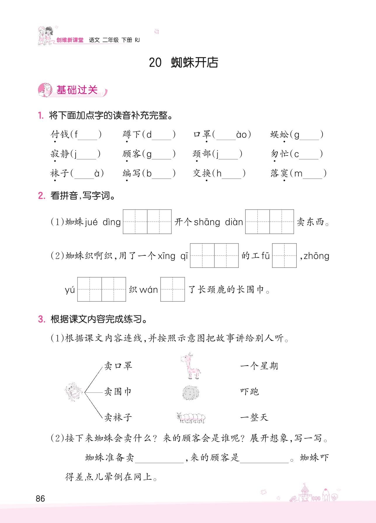 2022下册二年级语文人教版 第七单元 课文——20 蜘蛛开店