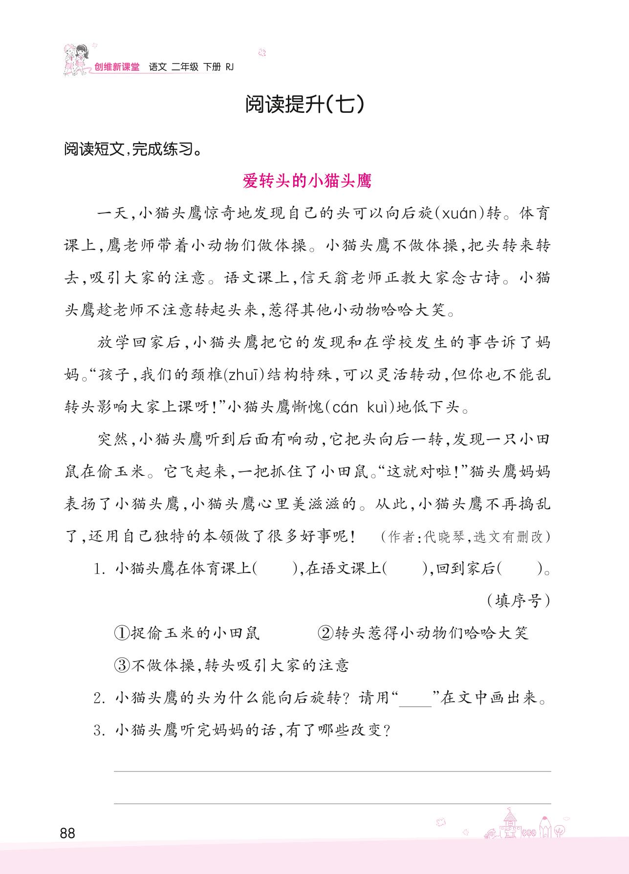 2022下册二年级语文人教版 第七单元 课文——阅读提升(七)