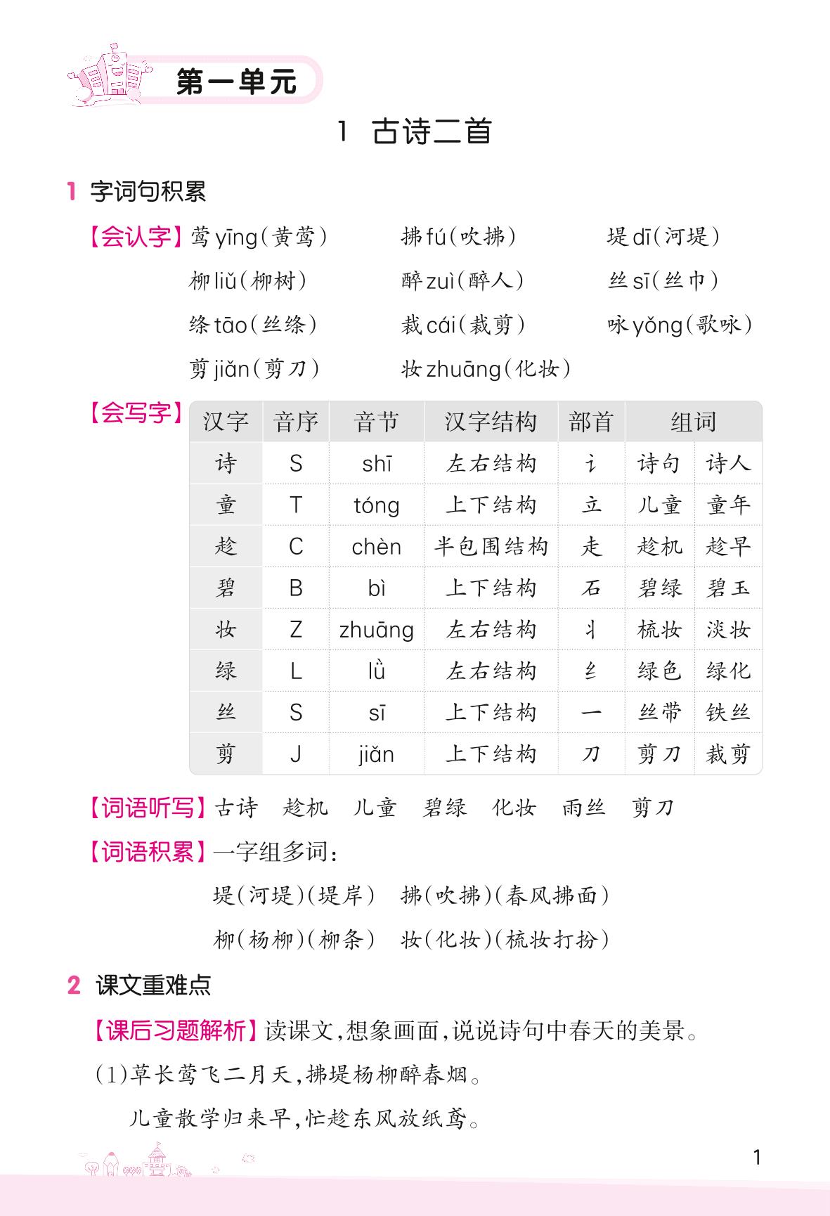 2022下册二年级语文人教版 第一单元 课文——1 古诗二首