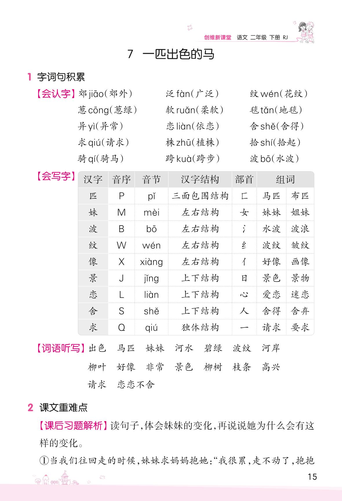 2022下册二年级语文人教版 第二单元 课文——7 一匹出色的马