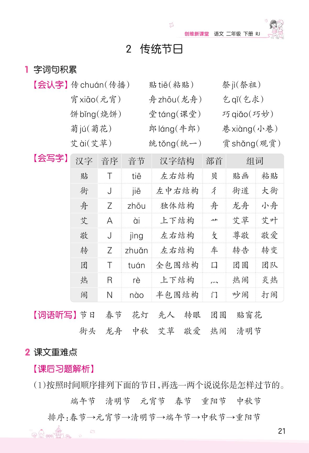 2022下册二年级语文人教版 第三单元 识字——2 传统节日