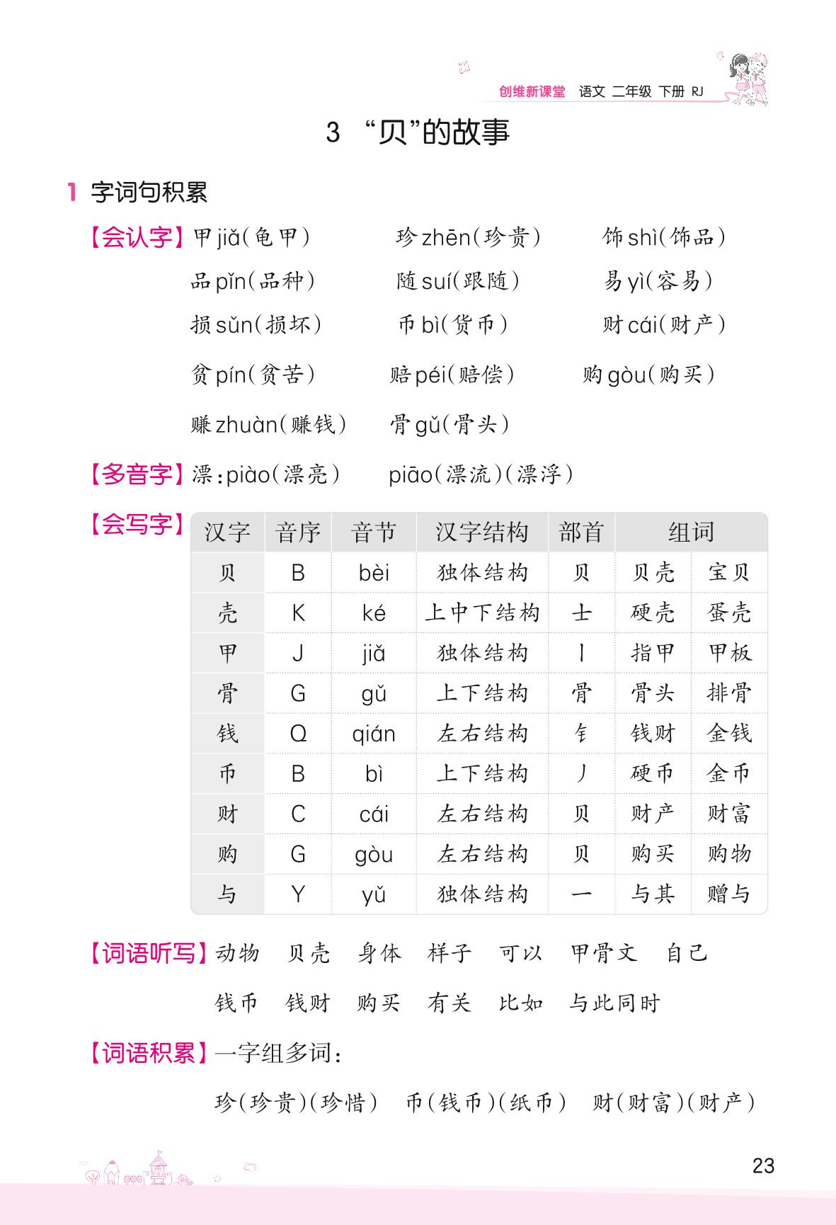 2022下册二年级语文人教版 第三单元 识字——3 “贝”的故事