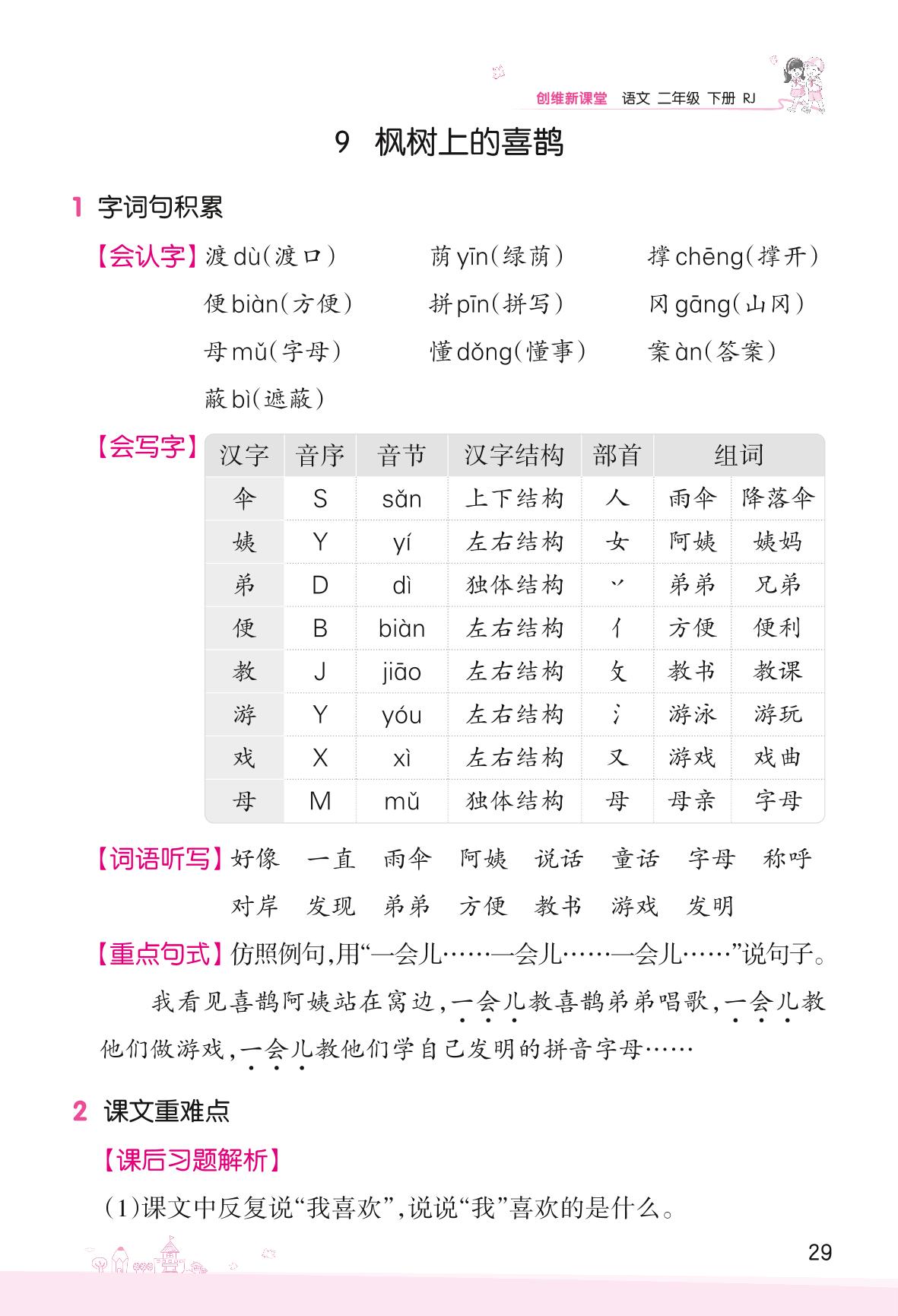 2022下册二年级语文人教版 第四单元 课文——9 枫树上的喜鹊