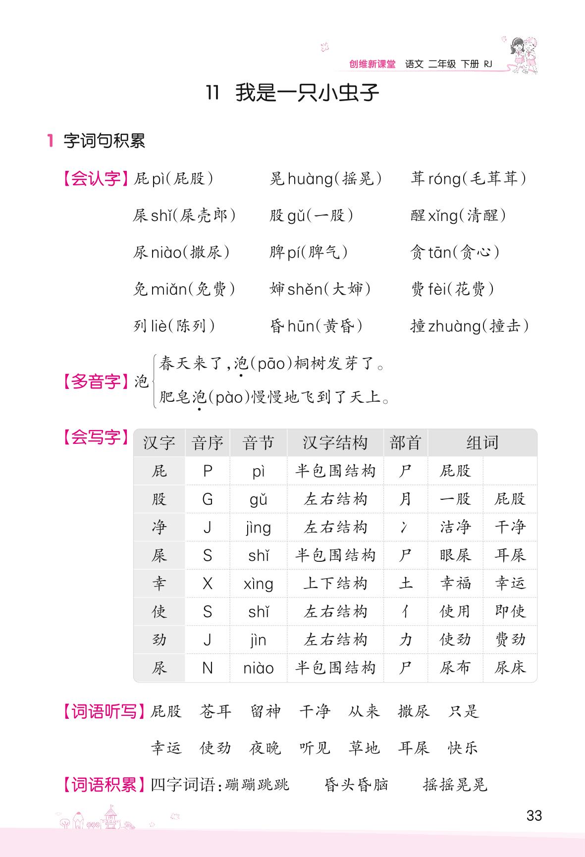2022下册二年级语文人教版 第四单元 课文——11 我是一只小虫子