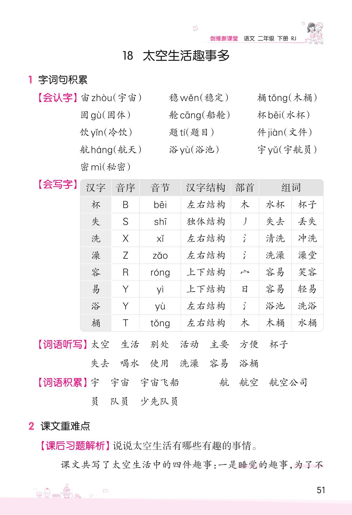 2022下册二年级语文人教版 第六单元 课文——18 太空生活趣事多