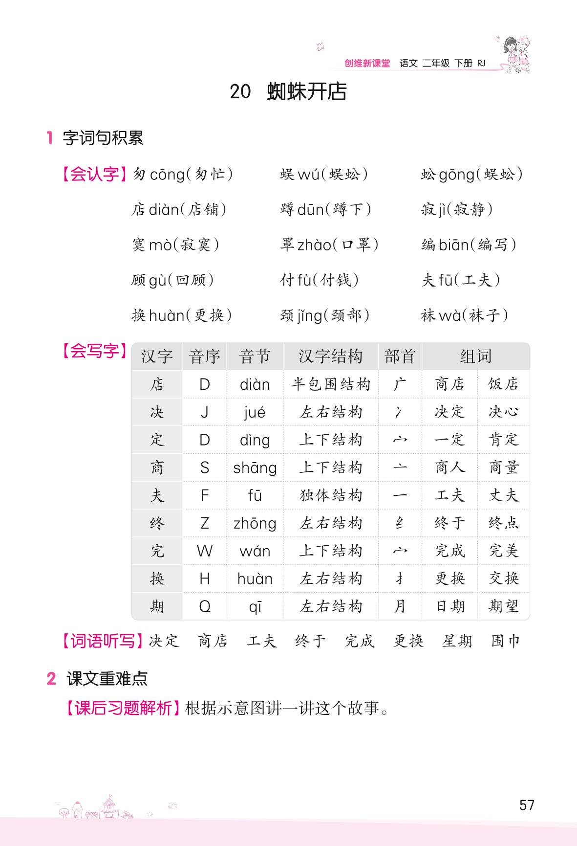2022下册二年级语文人教版 第七单元 课文——20 蜘蛛开店