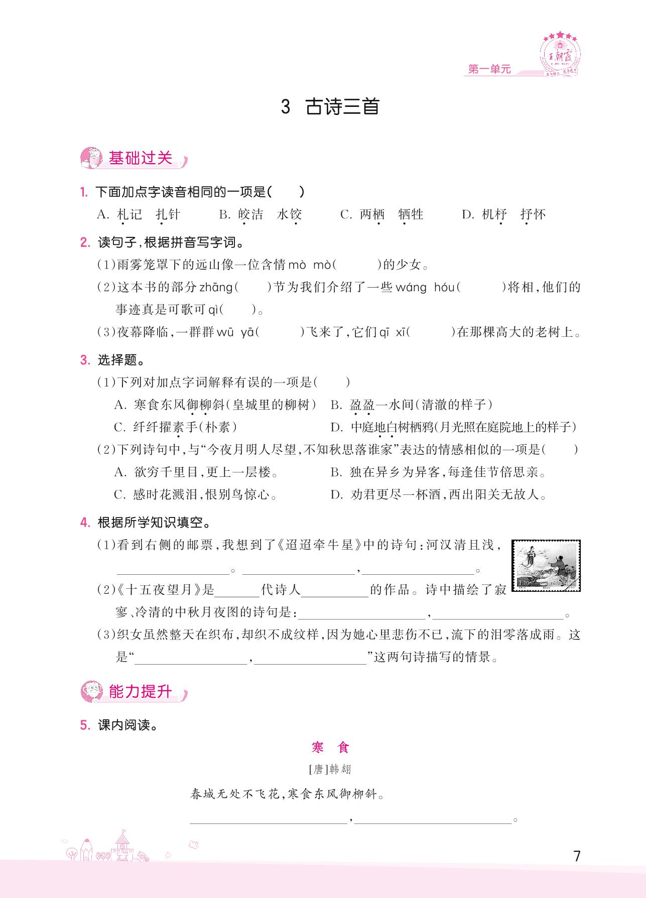 2022下册六年级语文人教版 第一单元——3 古诗三首