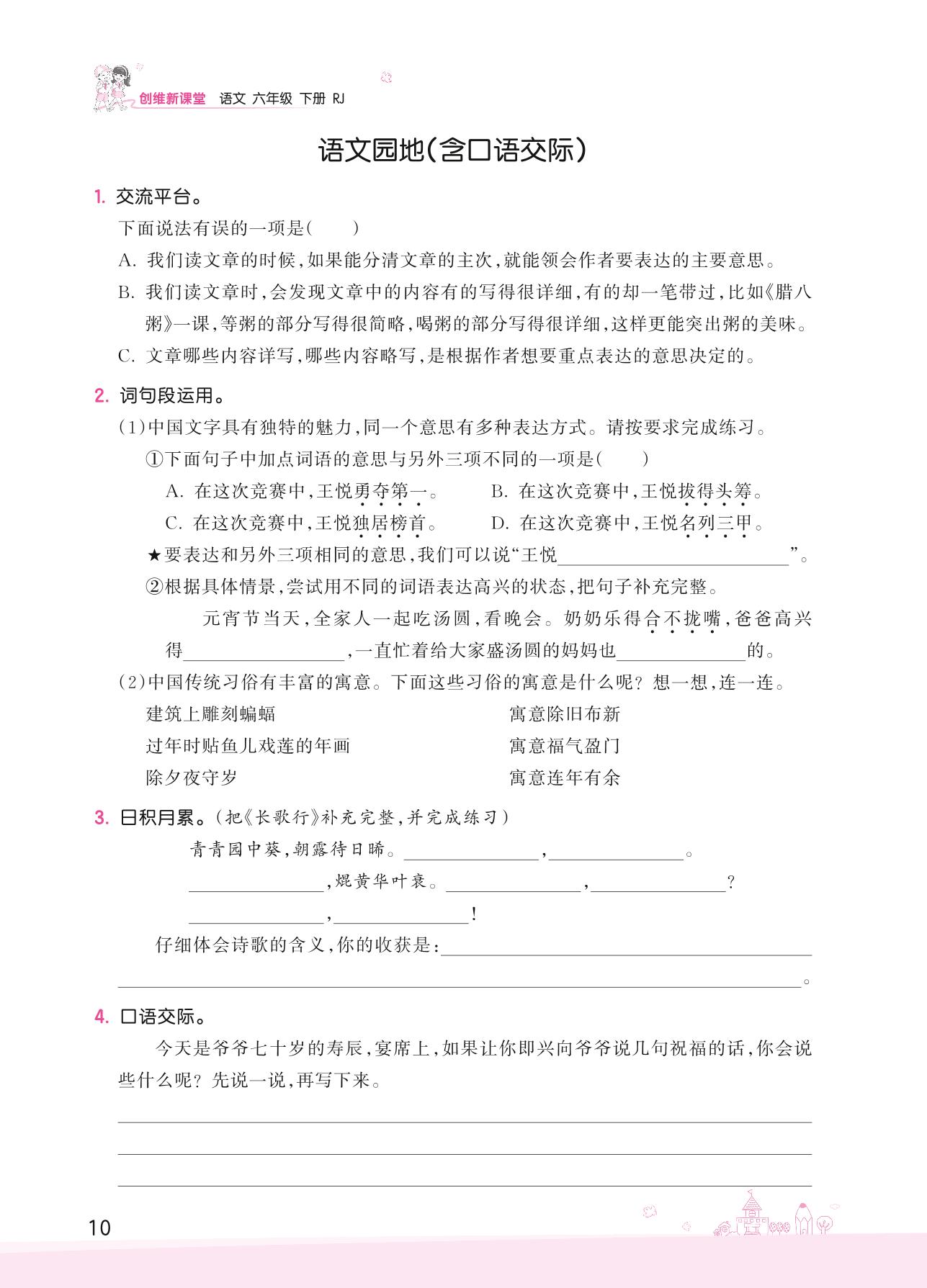 2022下册六年级语文人教版 第一单元——语文园地(含口语交际)