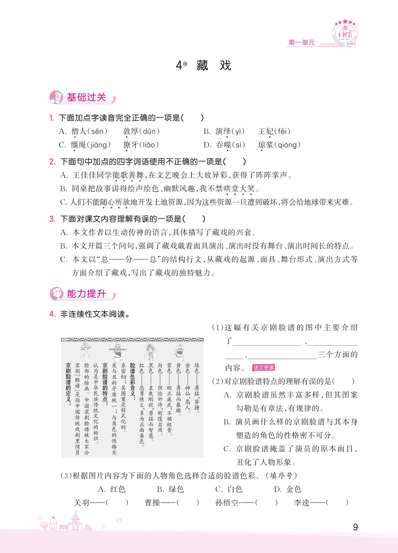2022下册六年级语文人教版 第一单元——4 藏戏