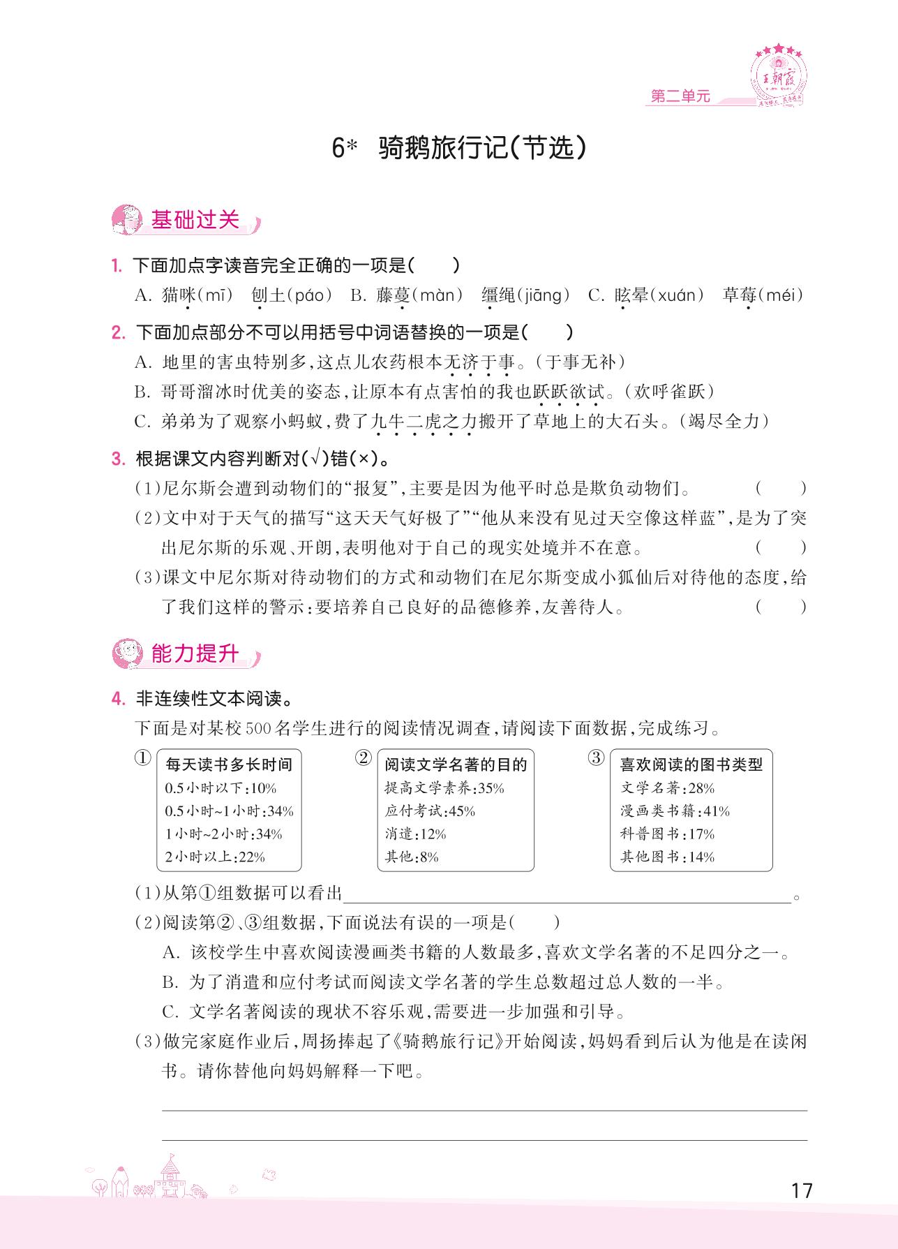 2022下册六年级语文人教版 第二单元——6 骑鹅旅行记(节选)