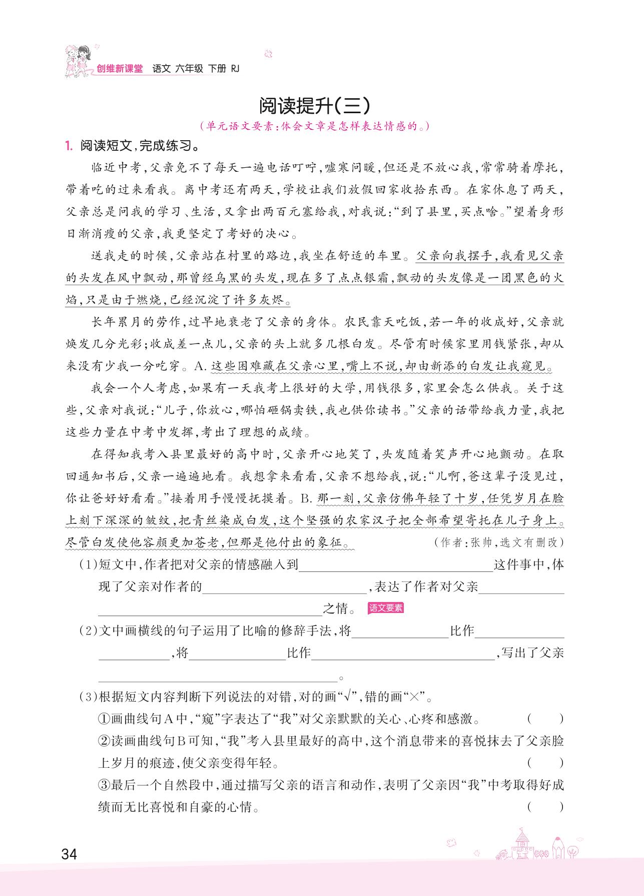 2022下册六年级语文人教版 第三单元——阅读提升(三)