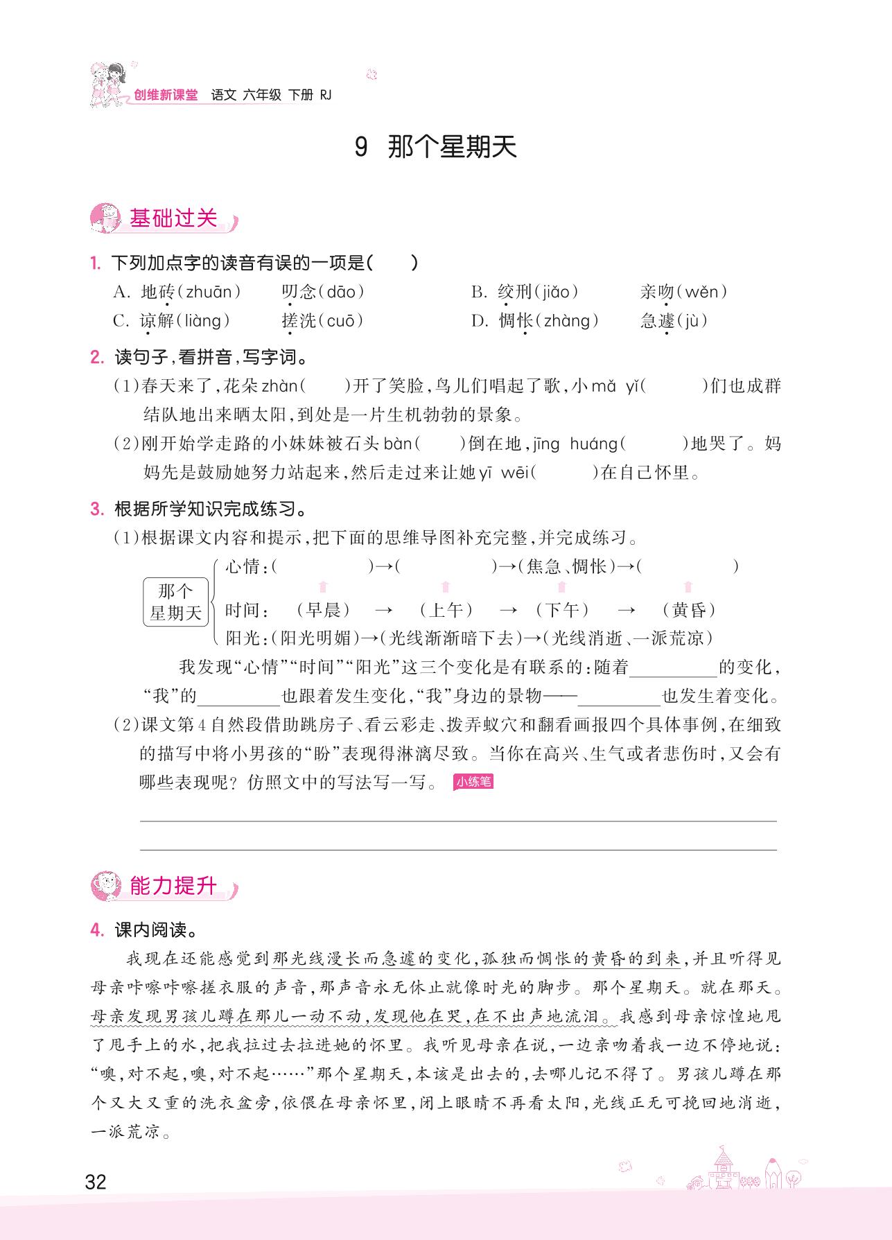 2022下册六年级语文人教版 第三单元——9 那个星期天