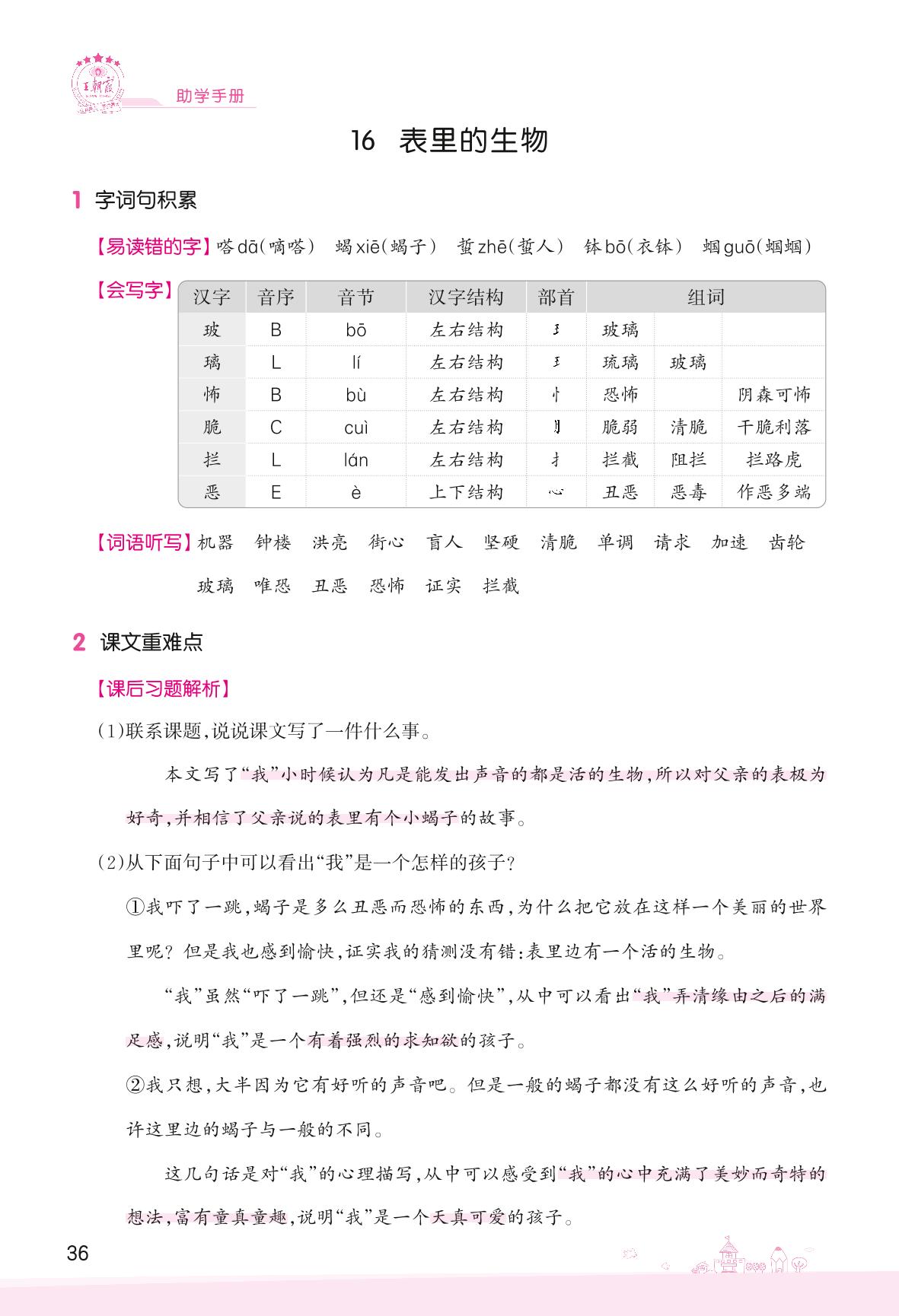 2022下册六年级语文人教版 第五单元——16 表里的生物
