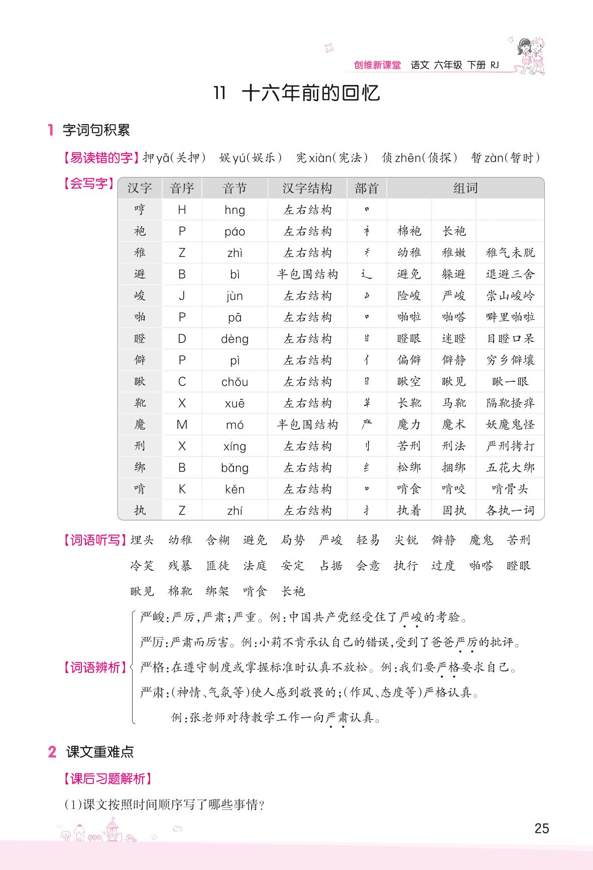 2022下册六年级语文人教版 第四单元——11 十六年前的回忆