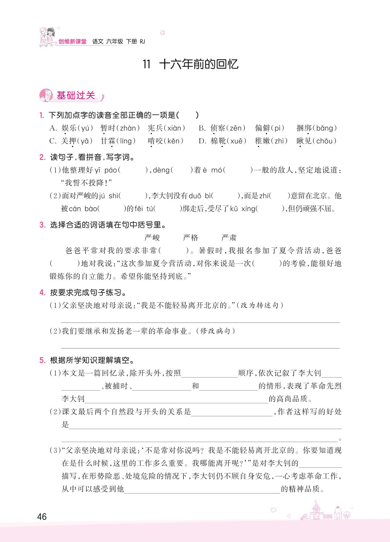 2022下册六年级语文人教版 第四单元——11 十六年前的回忆_R220122110127386