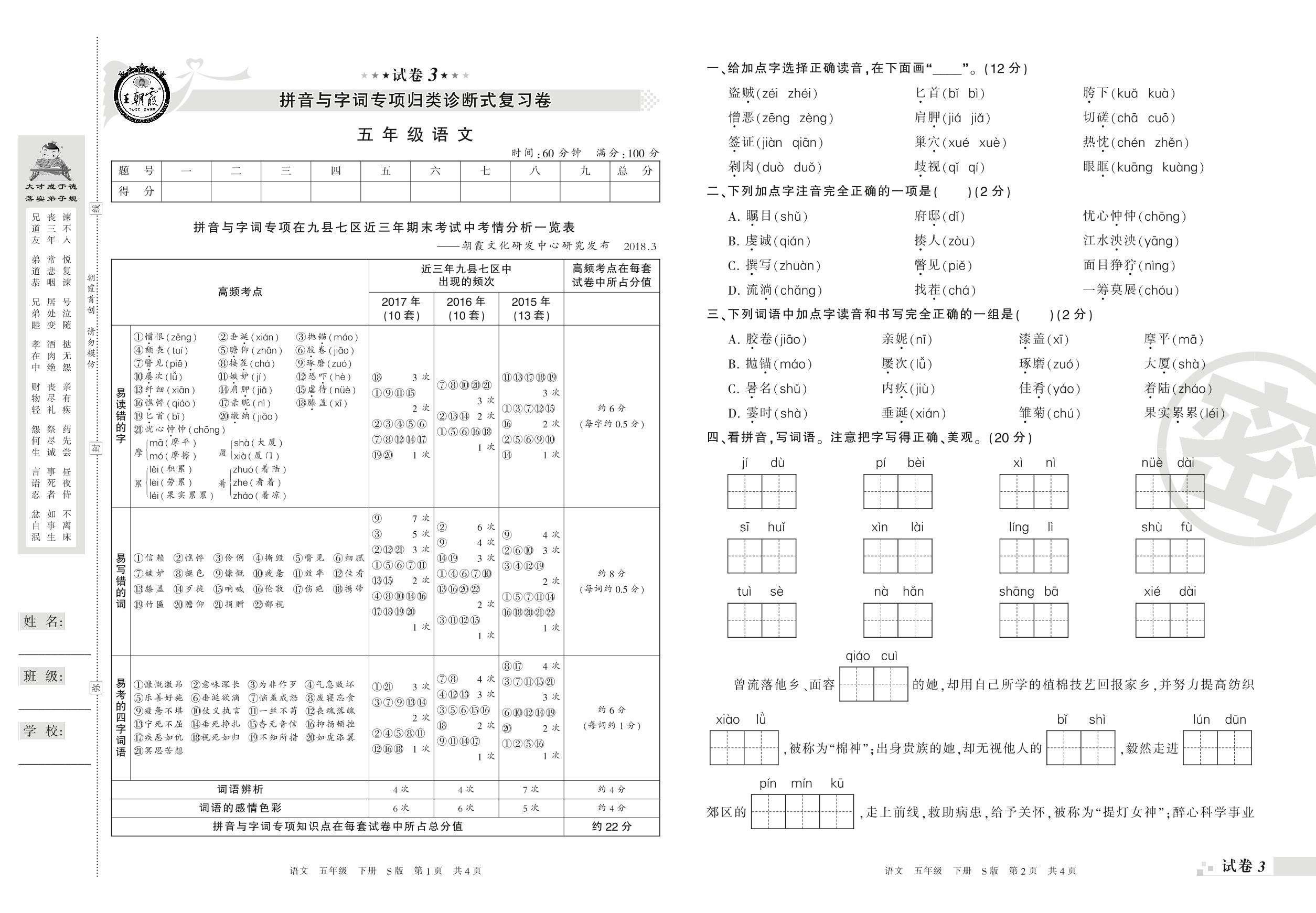 王朝霞期末专项卷——拼音与字词专项归类诊断式复习卷五年级下册语文(S版)_R210801232023【3】