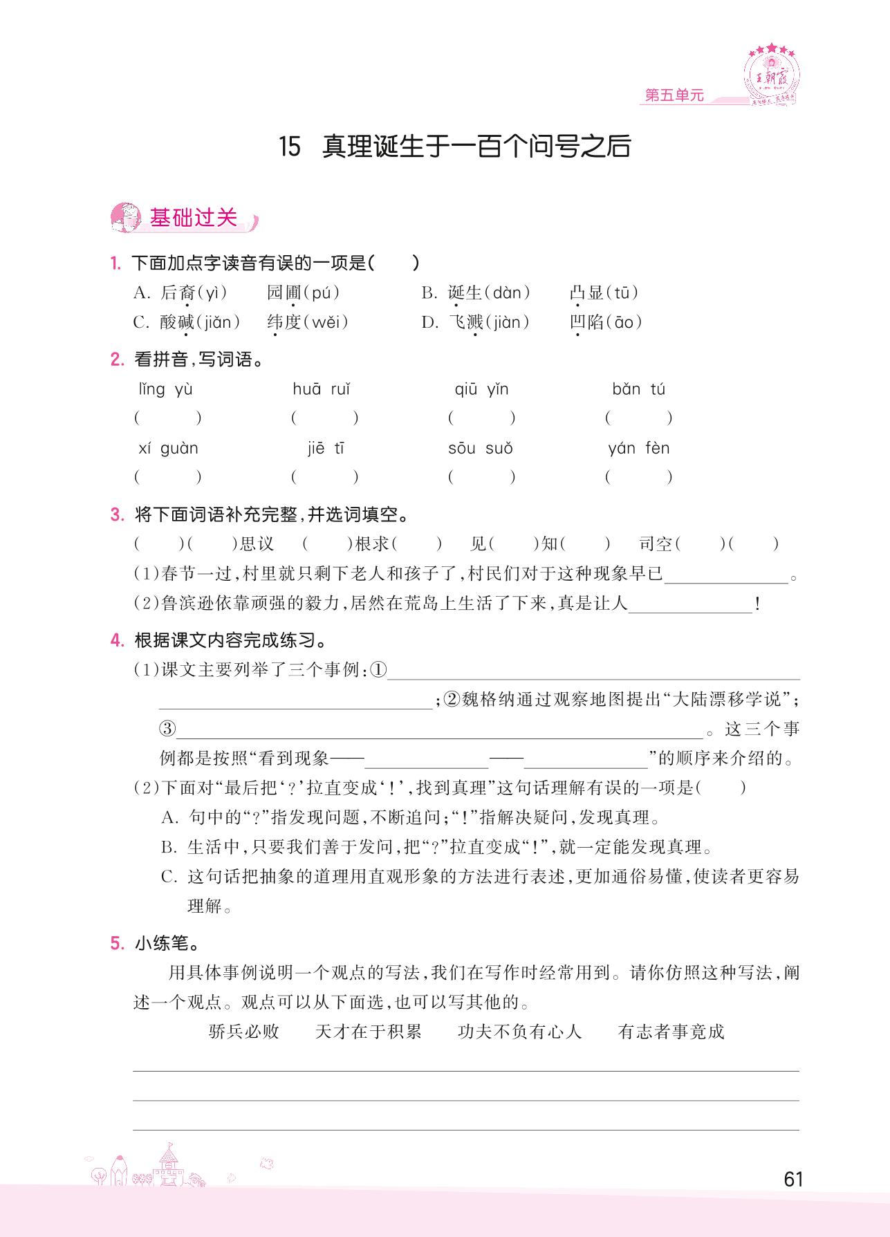 2022下册六年级语文人教版 第五单元——15 真理诞生于一百个问号之后_R220122110128643