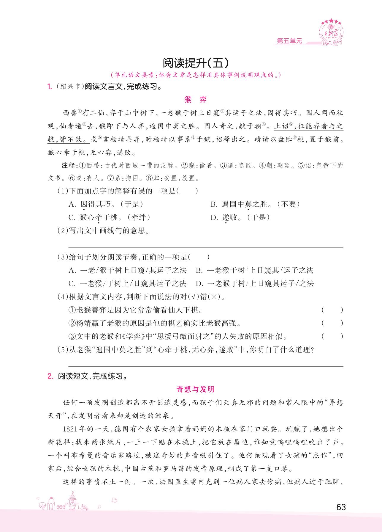 2022下册六年级语文人教版 第五单元——阅读提升(五)