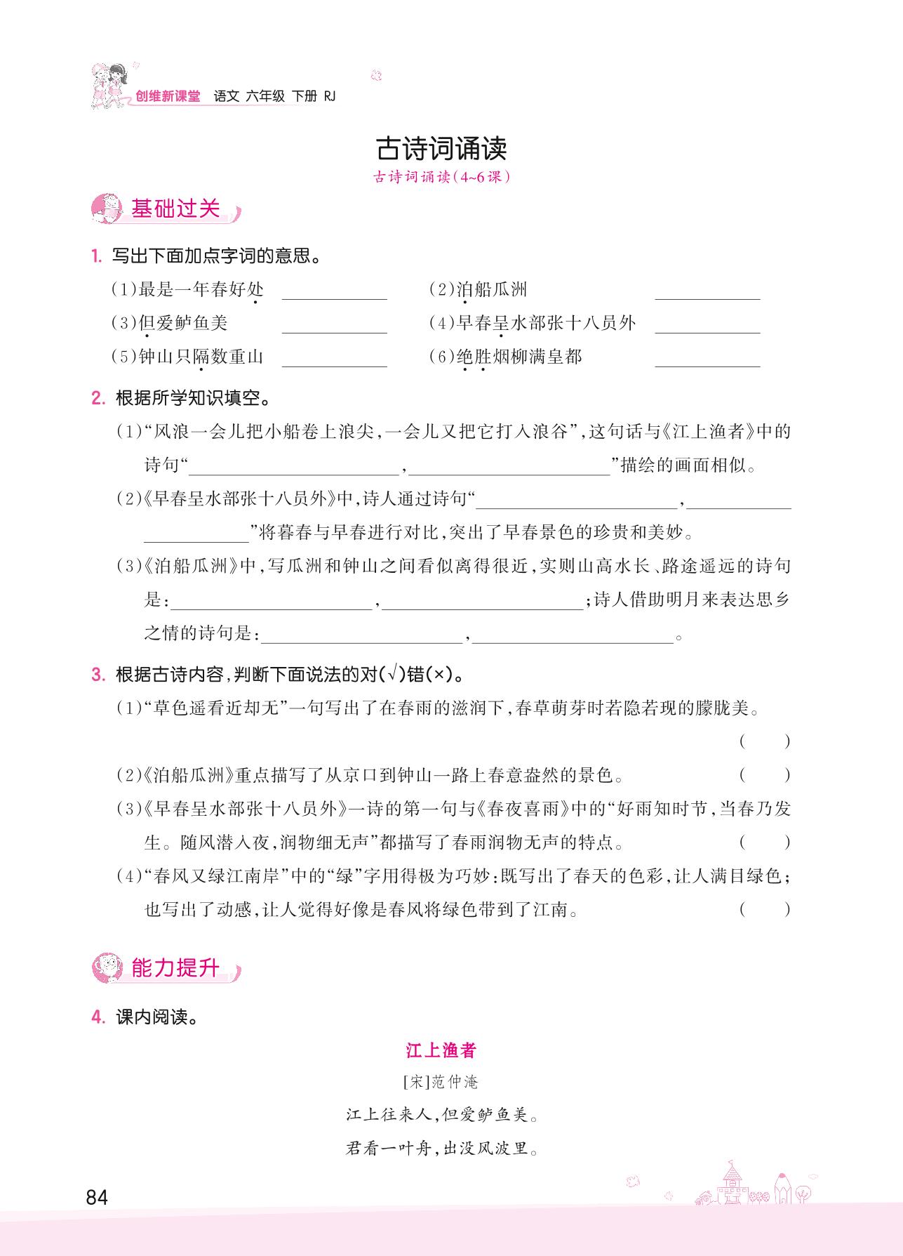 2022下册六年级语文人教版 古诗词诵读——古诗词诵读(4~6课)_R220122110129003