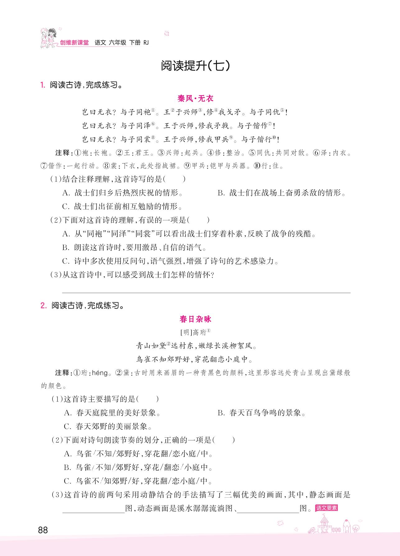 2022下册六年级语文人教版 古诗词诵读——阅读提升(七)