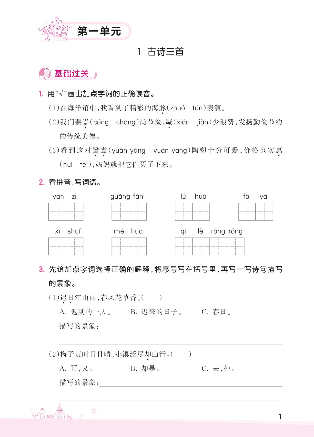 2022下册三年级语文人教版 第一单元——1 古诗三首