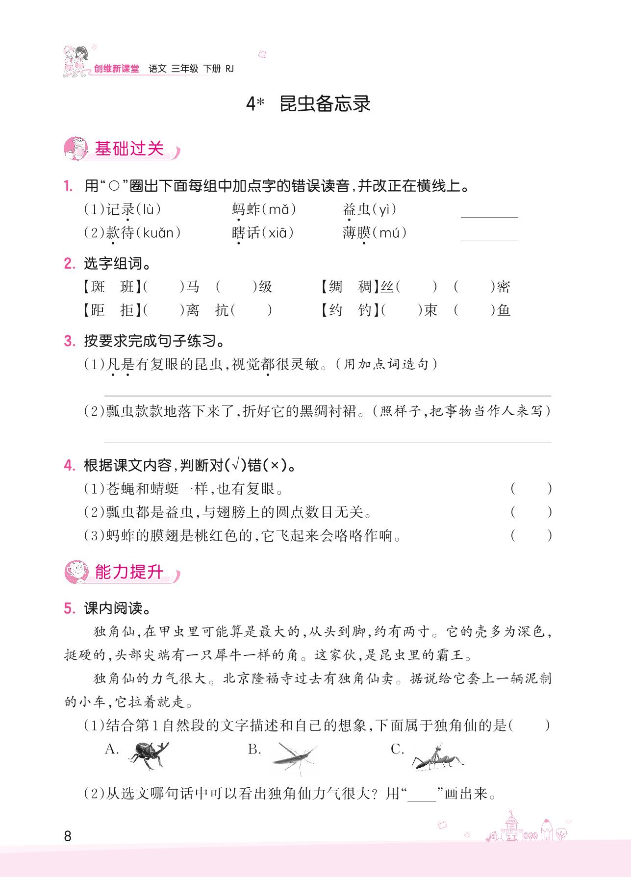 2022下册三年级语文人教版 第一单元——4 昆虫备忘录