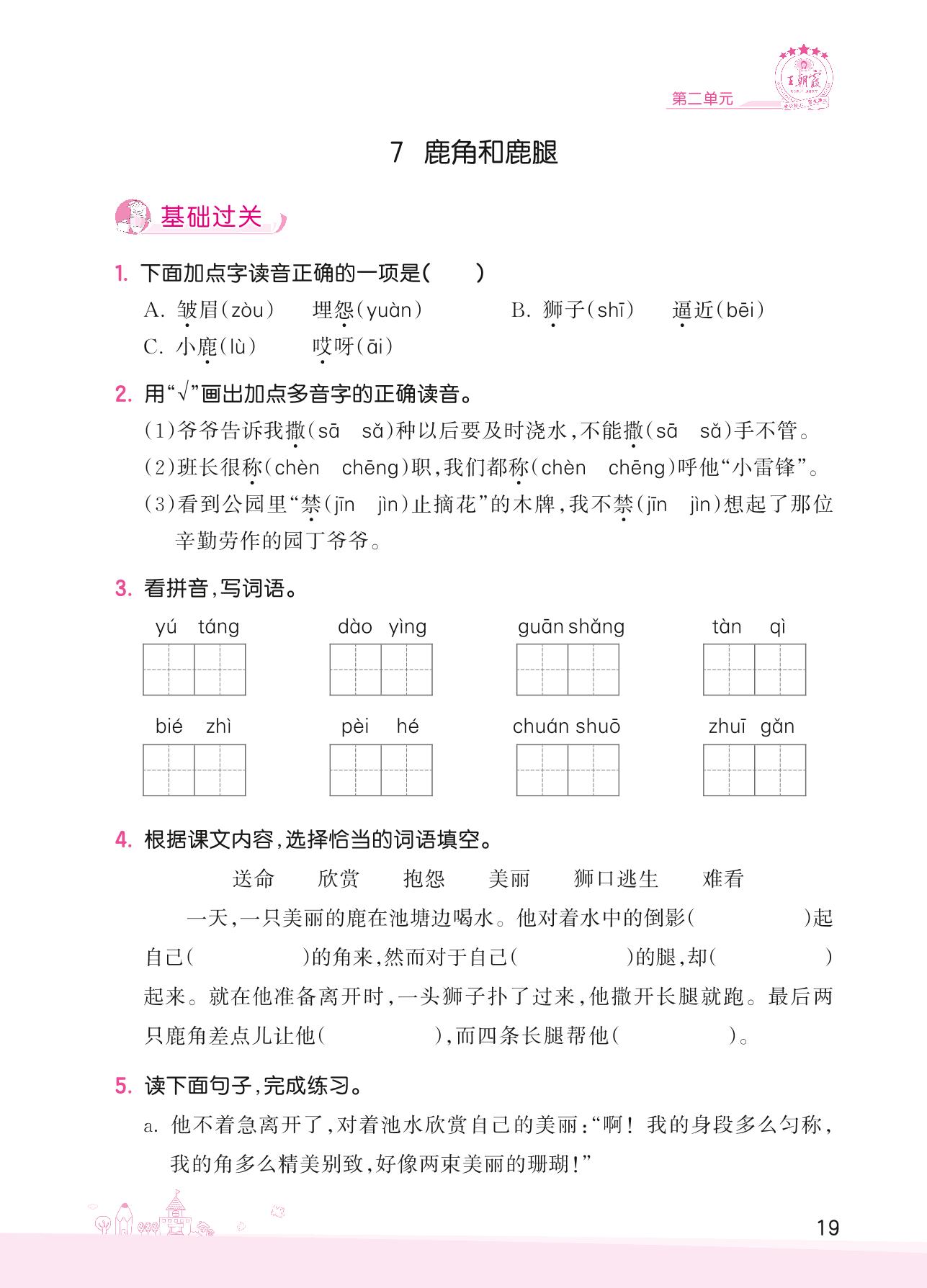 2022下册三年级语文人教版 第二单元——7 鹿角和鹿腿