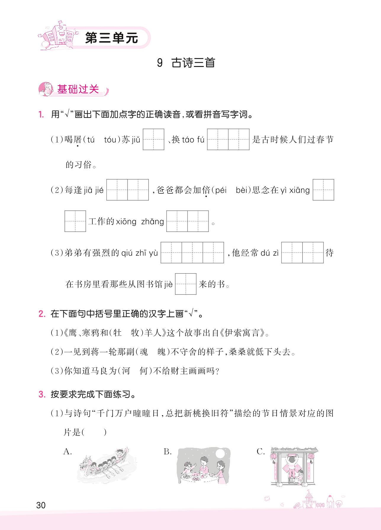 2022下册三年级语文人教版 第三单元——9 古诗三首