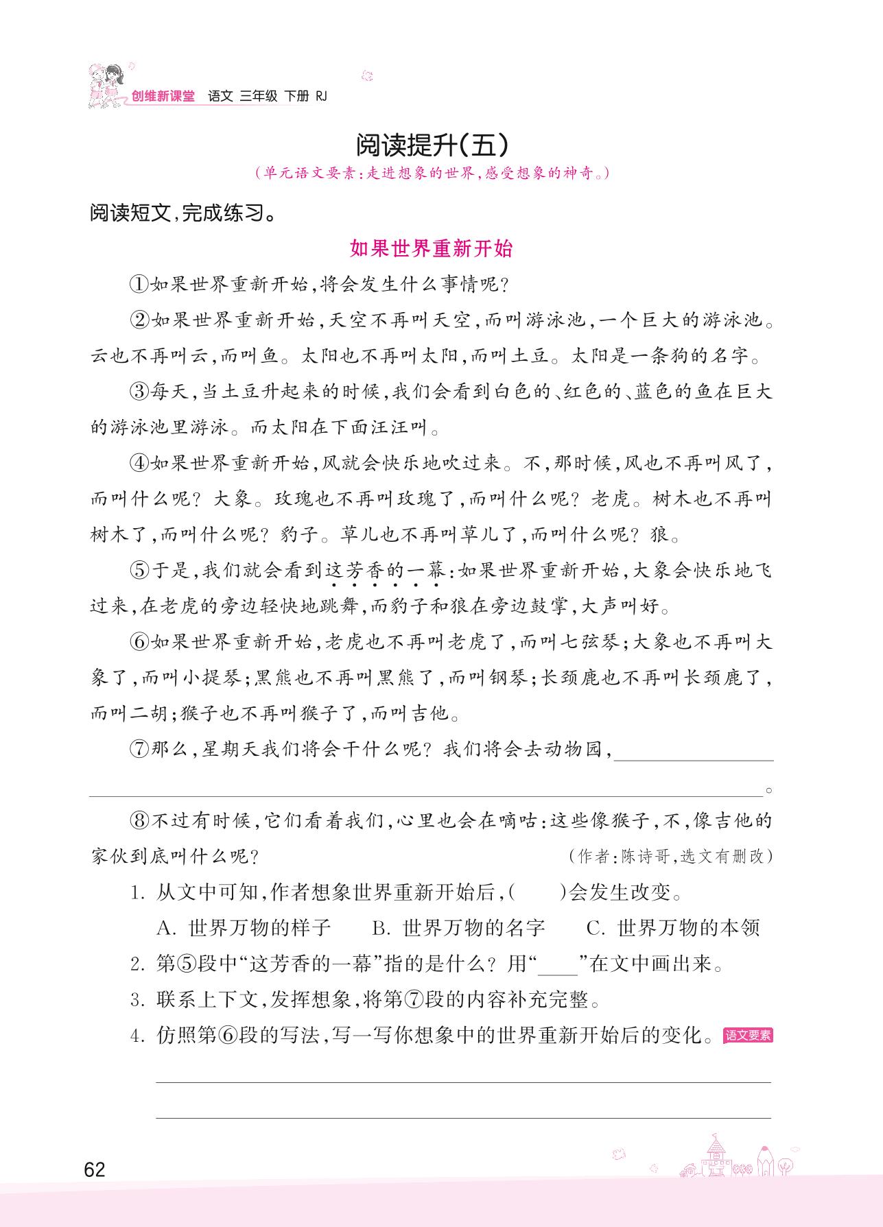 2022下册三年级语文人教版 第五单元——阅读提升(五)