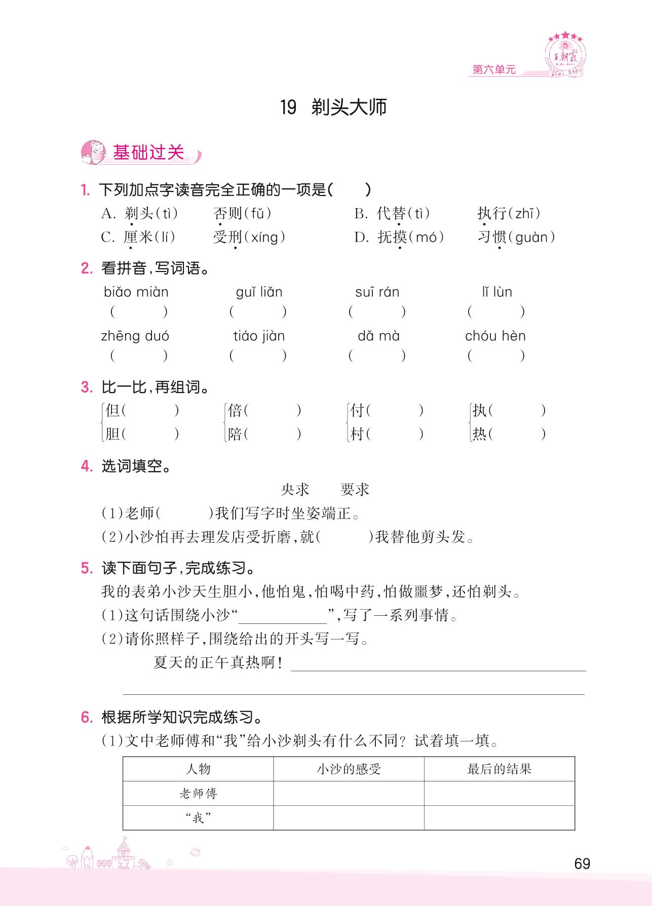2022下册三年级语文人教版 第六单元——19 剃头大师