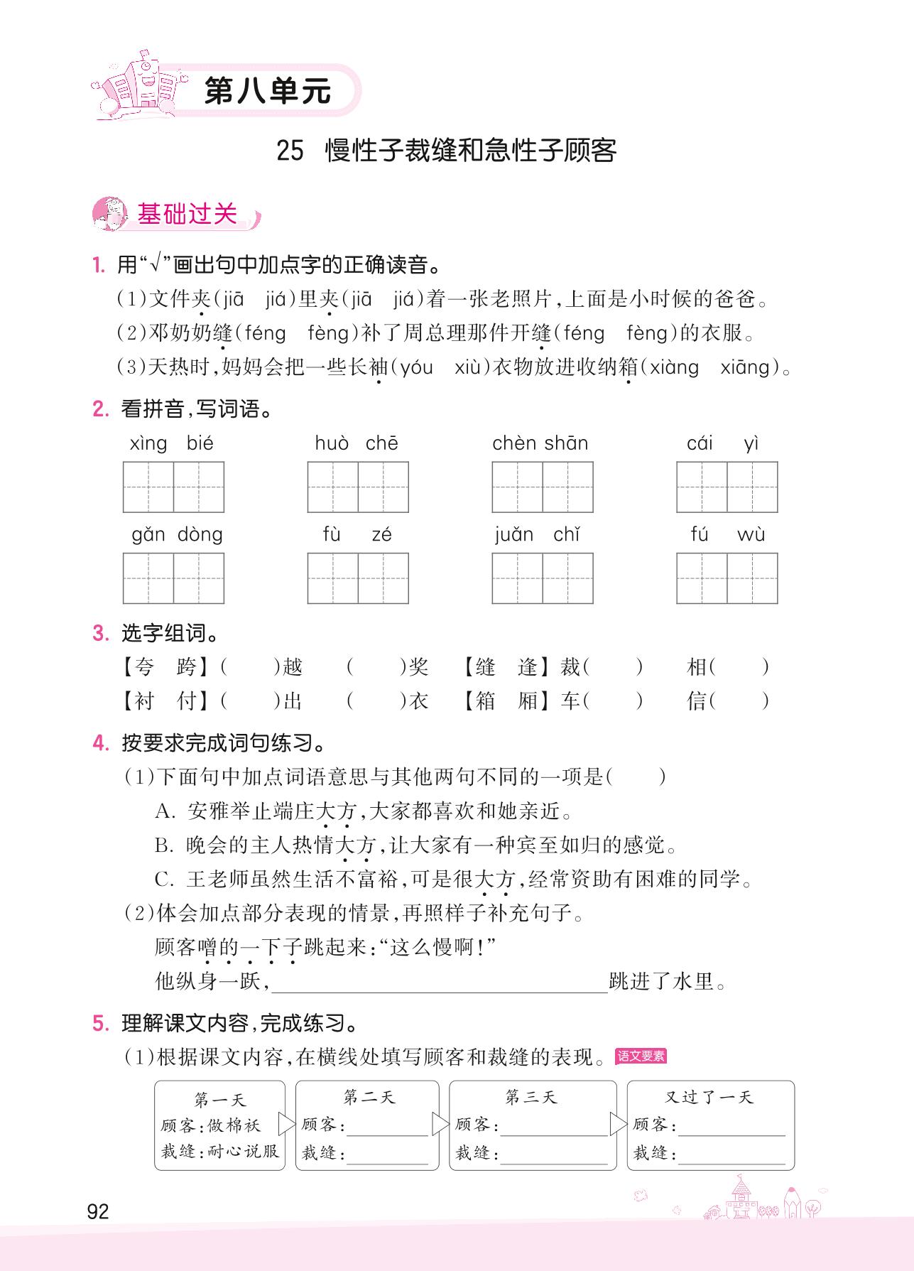 2022下册三年级语文人教版 第八单元——25 慢性子裁缝和急性子顾客