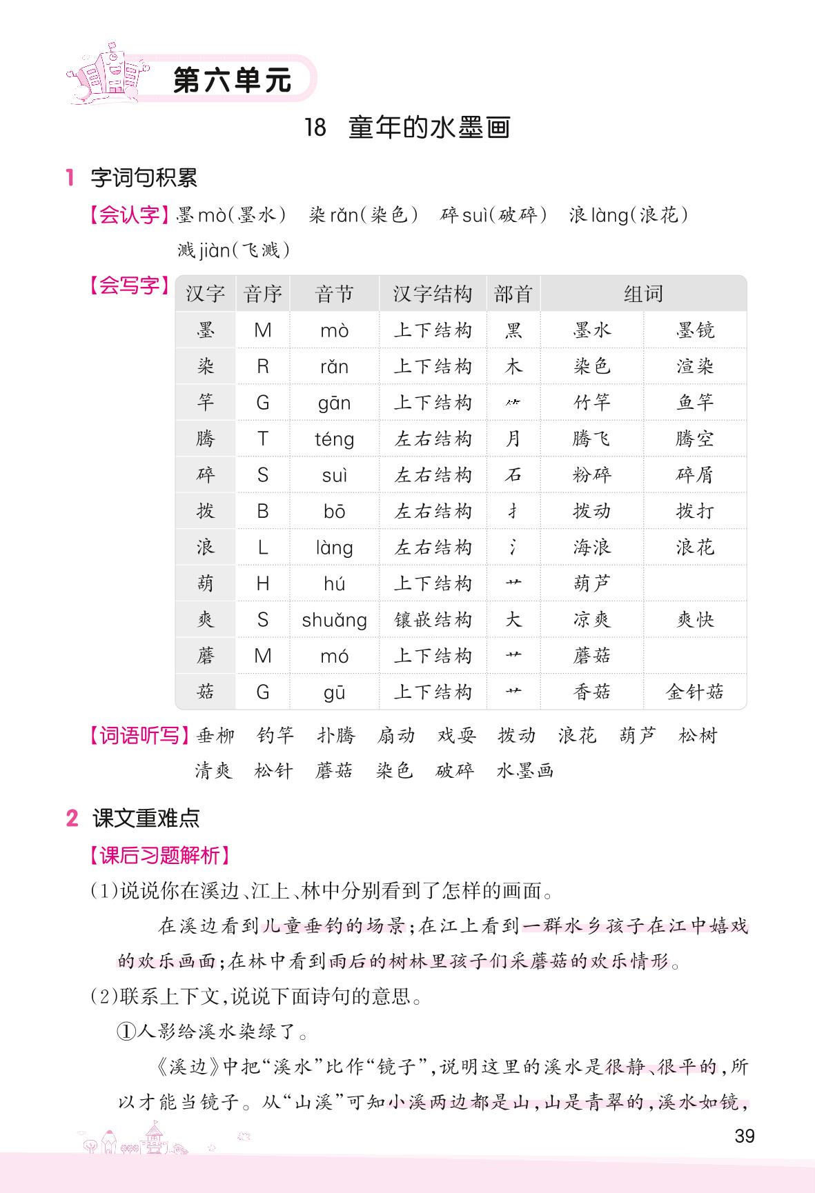2022下册三年级语文人教版 第六单元——18 童年的水墨画_R220122120219975