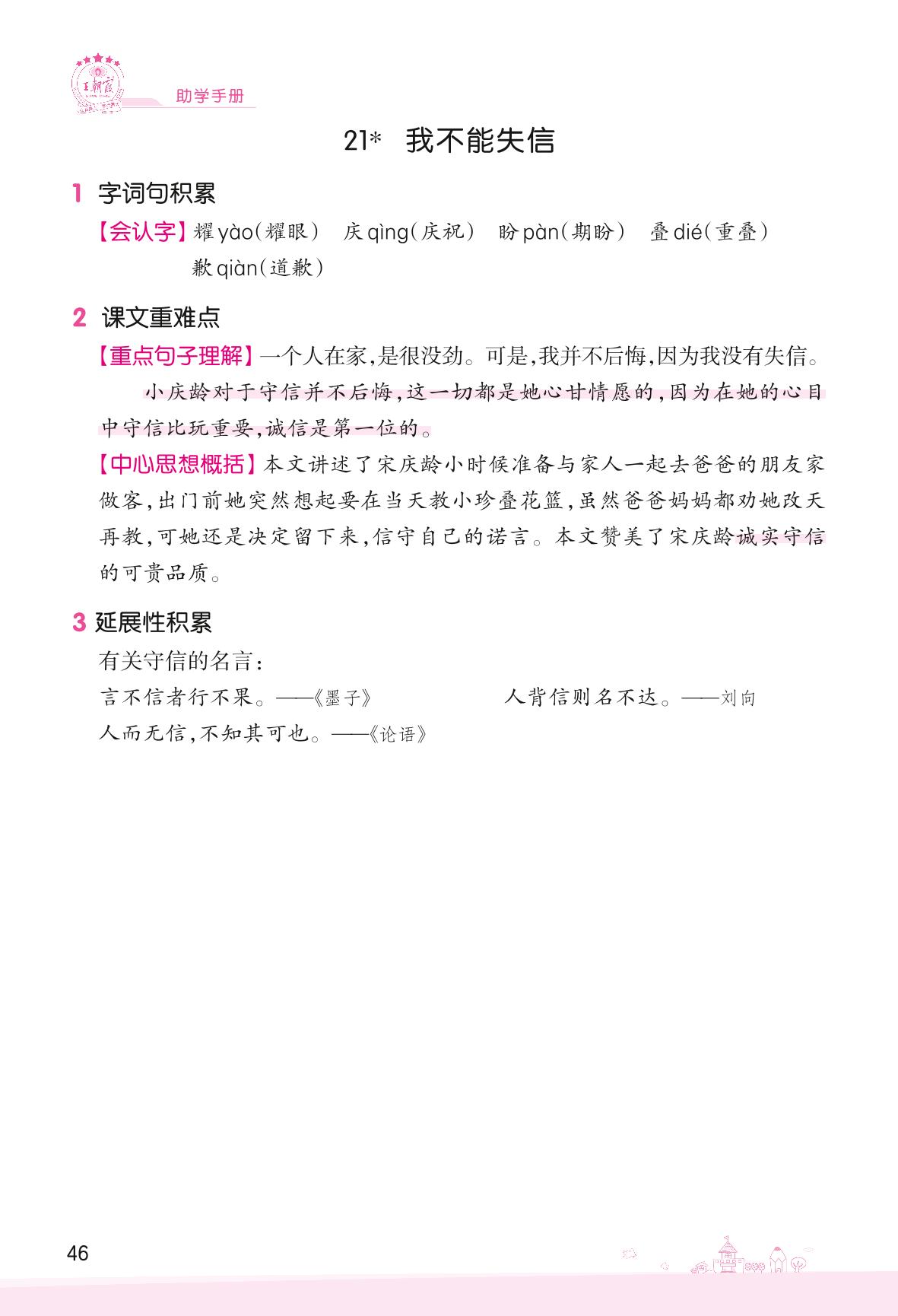 2022下册三年级语文人教版 第六单元——21 我不能失信_R220122120219891